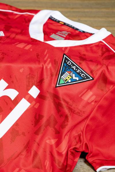 Crafted from 100% polyester, the garment features a traditional white V-neck collar. Furthermore, the internal back neck tape includes a tribute to the involvement of our DAFC Fussball GMBH investors in the club.