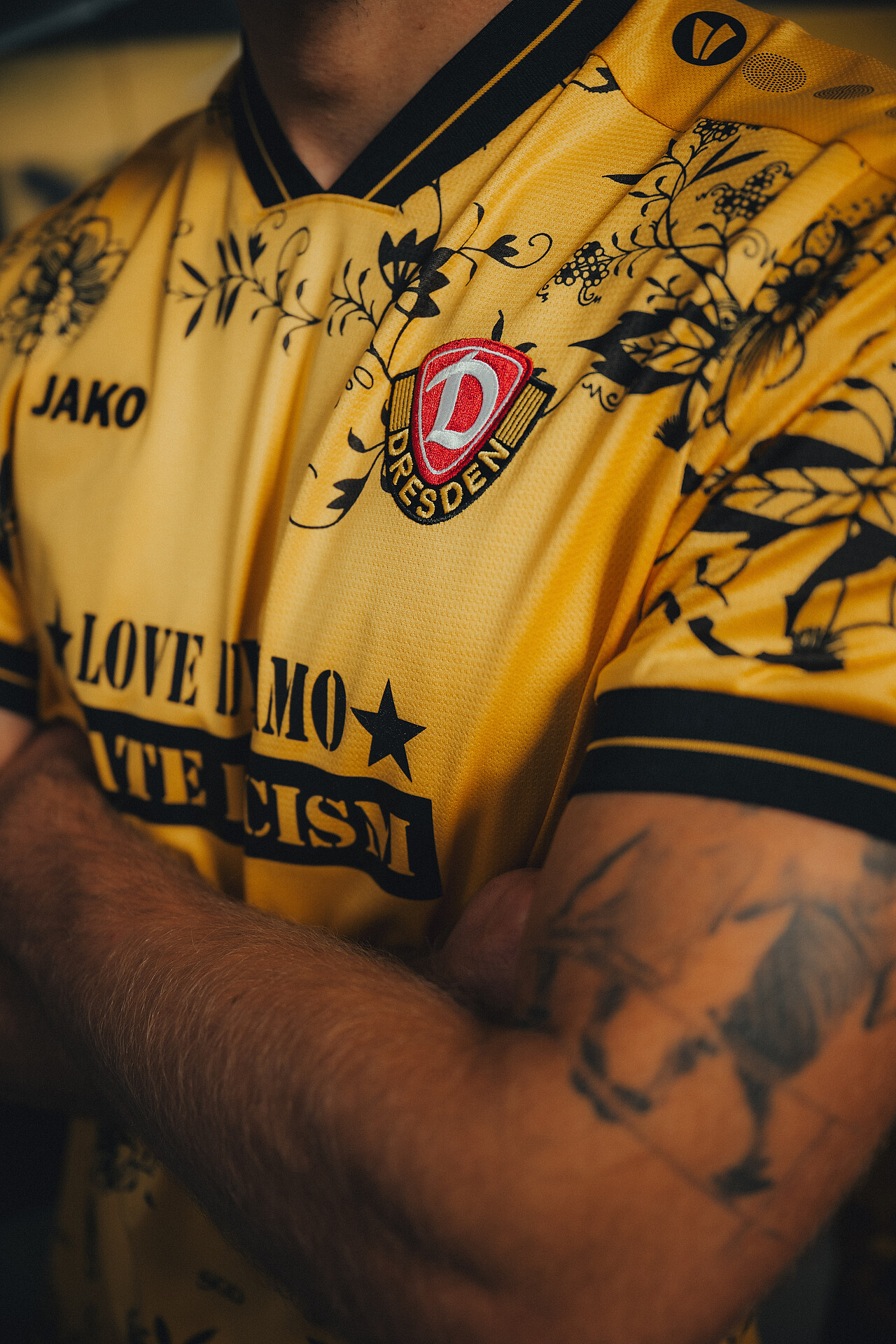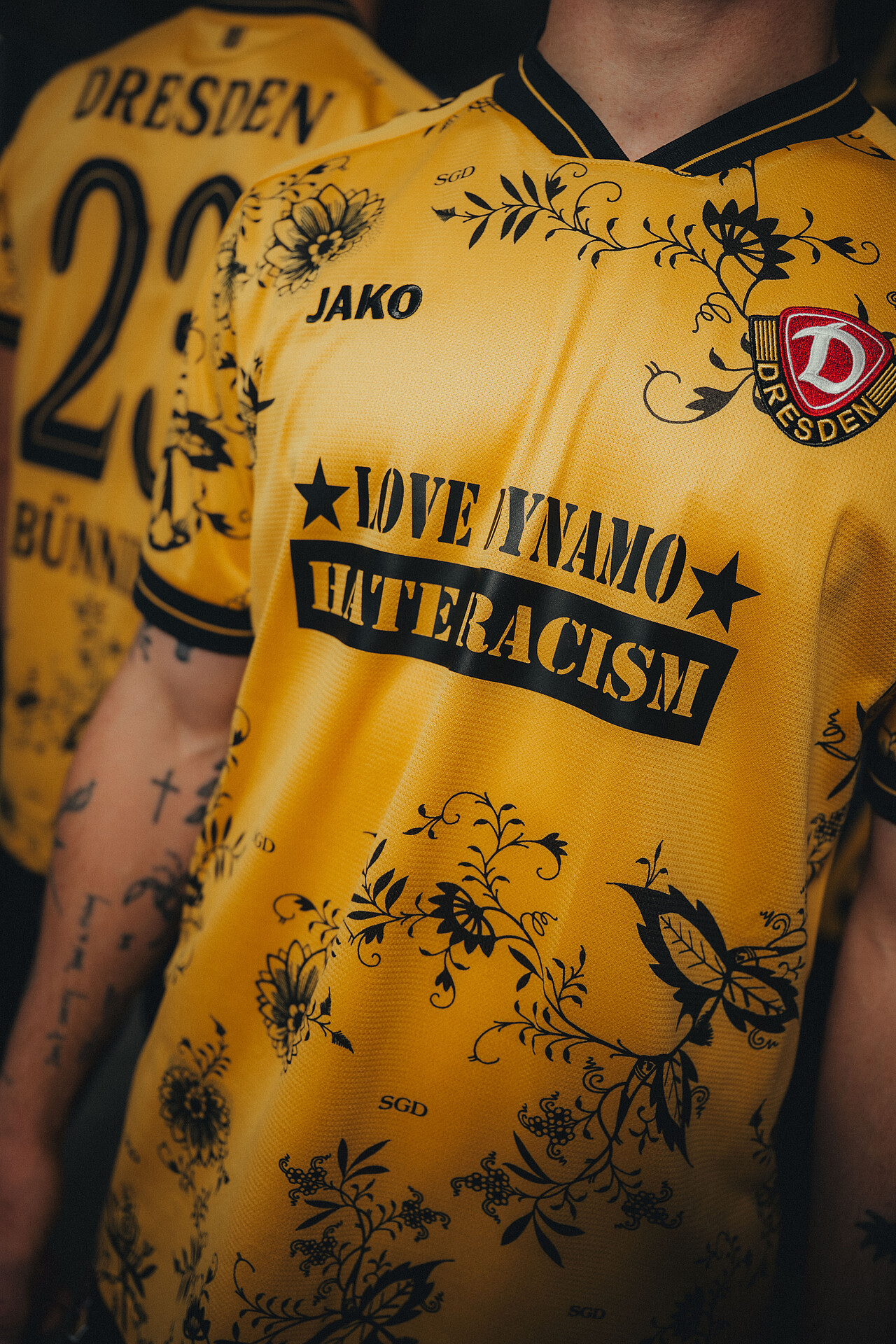 The special edition will be worn for the 15th annual “Love Dynamo Hate Racism” matchday against SC Paderborn on 25 October 2025. The shirt showcases a distinctive black floral pattern inspired by the traditional Meissen onion motif, symbolising unity and diversity within the club’s community.