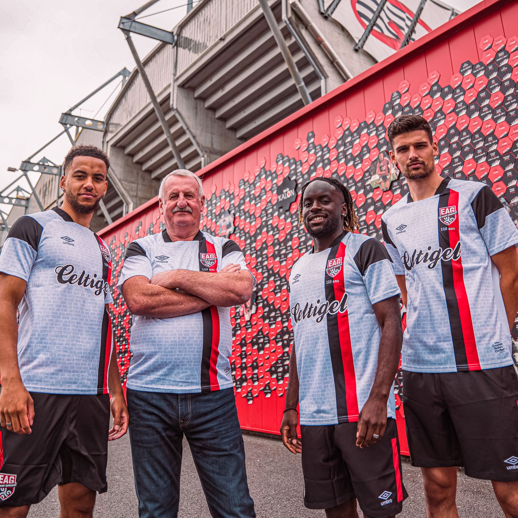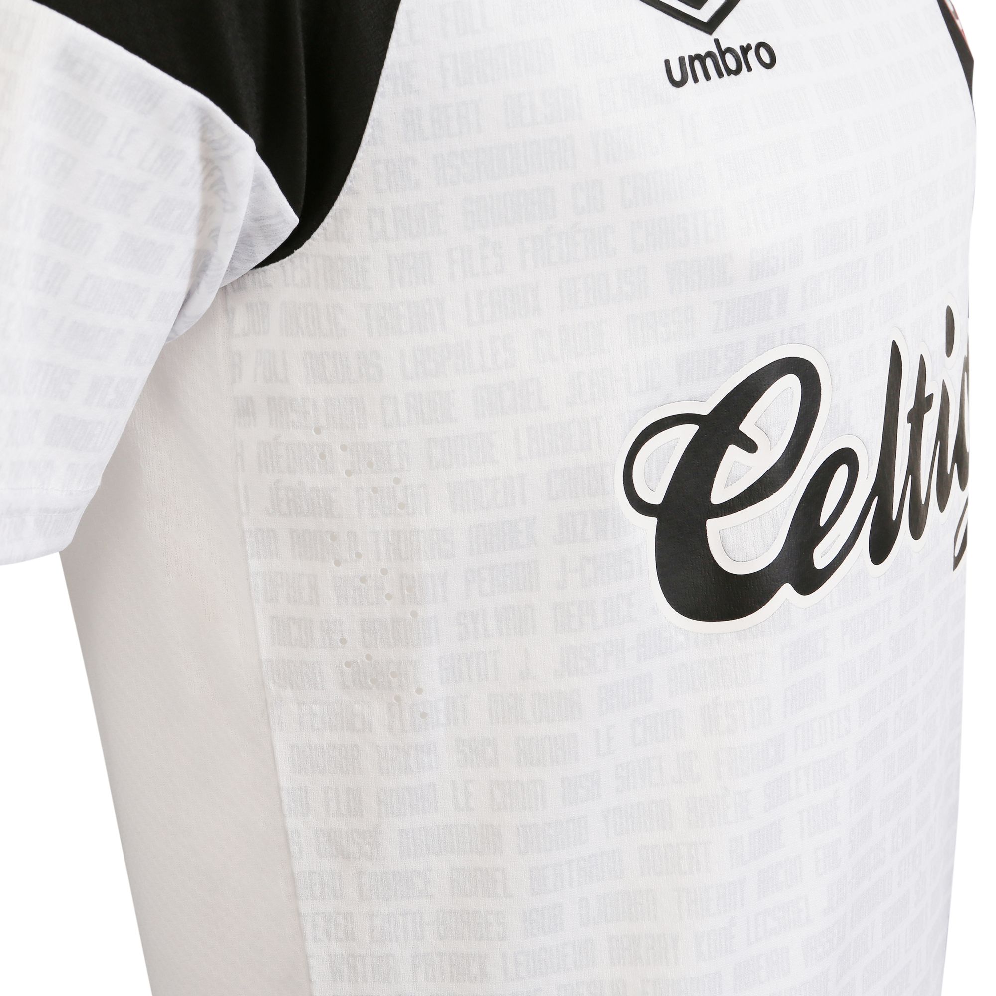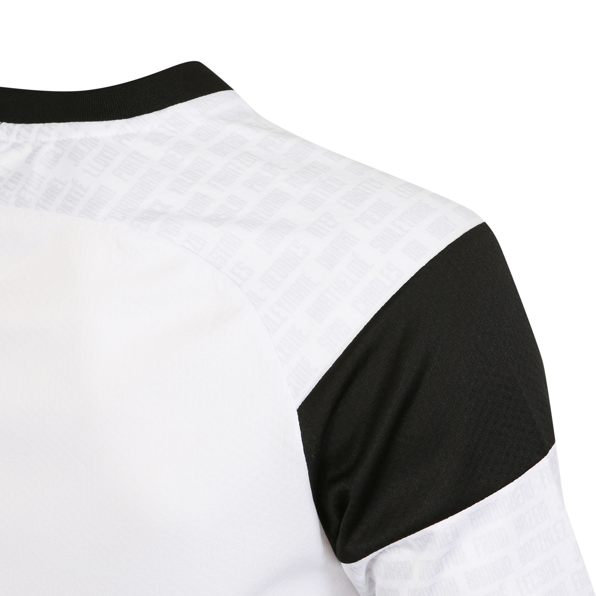 Much of this decoration comes via the dual-coloured stripe which runs vertically behind the fully coloured club crest - augmented here with a detail referencing the side’s 110th birthday - and the white of the shirt features the names of over 400 former players and coaches.