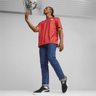 The new release - primarily in “PUMA Red” - features an all-over print and detailing in gold, aside from the international side’s crest, which is in full standard colouring.
