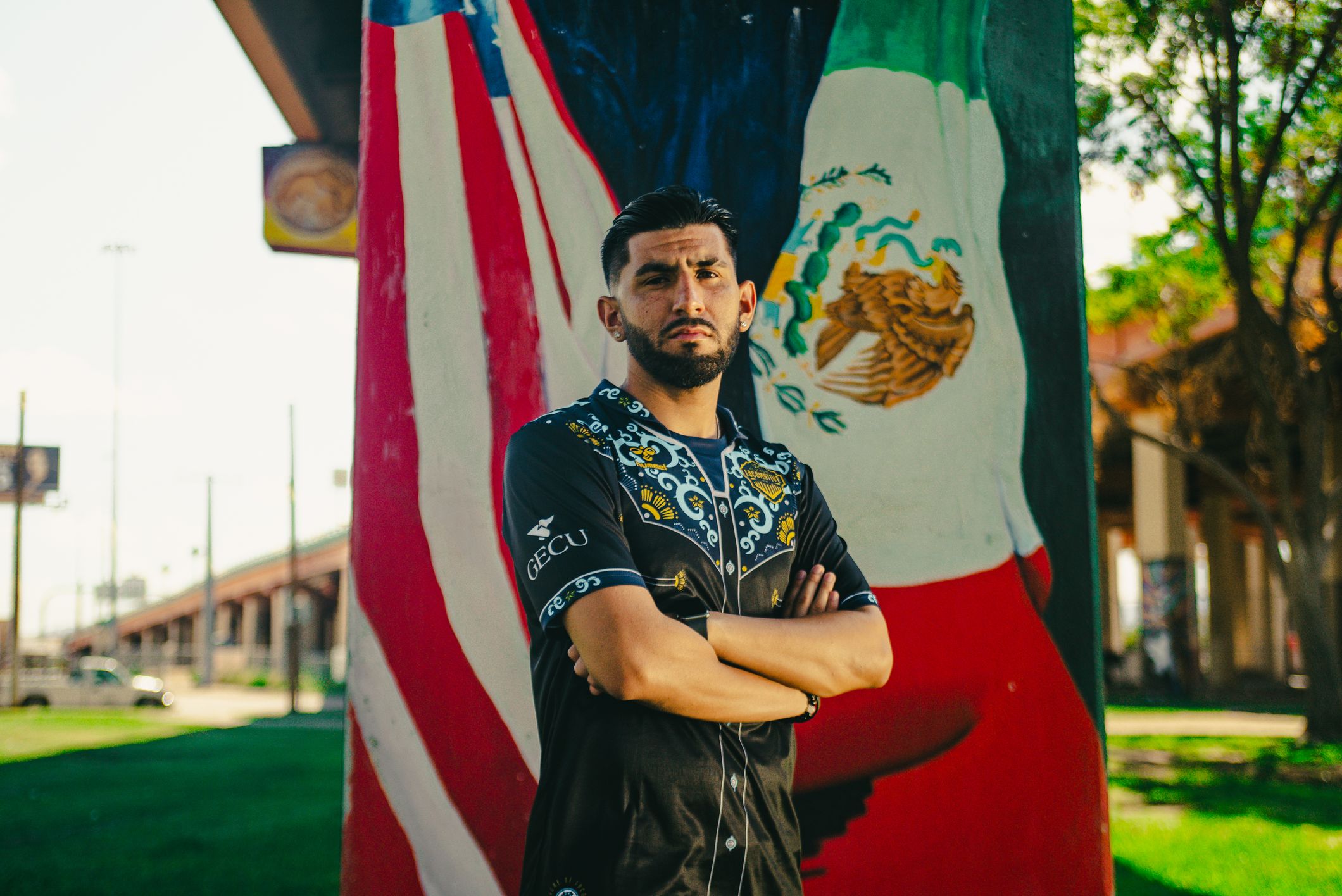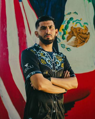 The Vaquero Kit, designed by Hummel, pays tribute to the Western and Latino culture of the Borderplex region. The design resembles a traditional Mexican cowboy shirt, featuring intricate patterns and details that reflect the rich heritage of the area.