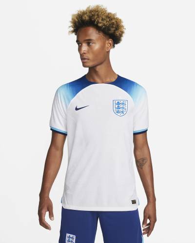 To complete the English international side’s kit, the shorts are in blue and the socks white.