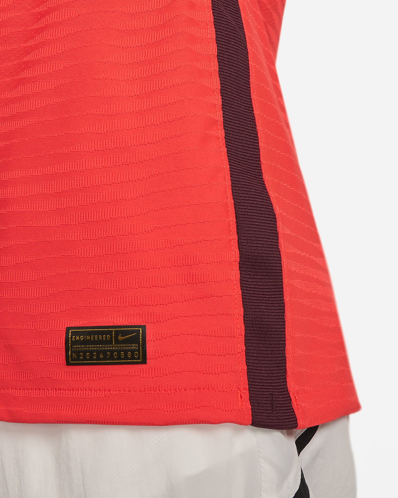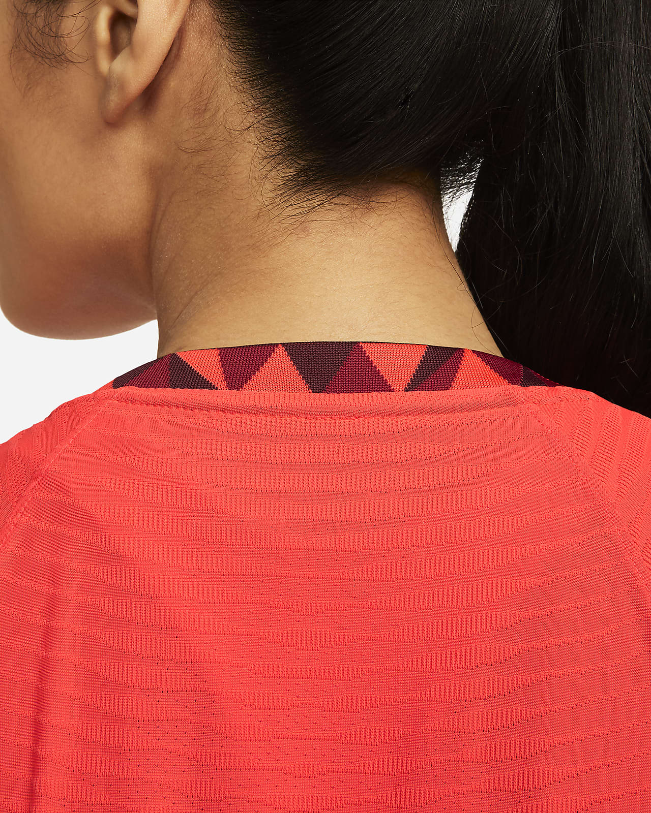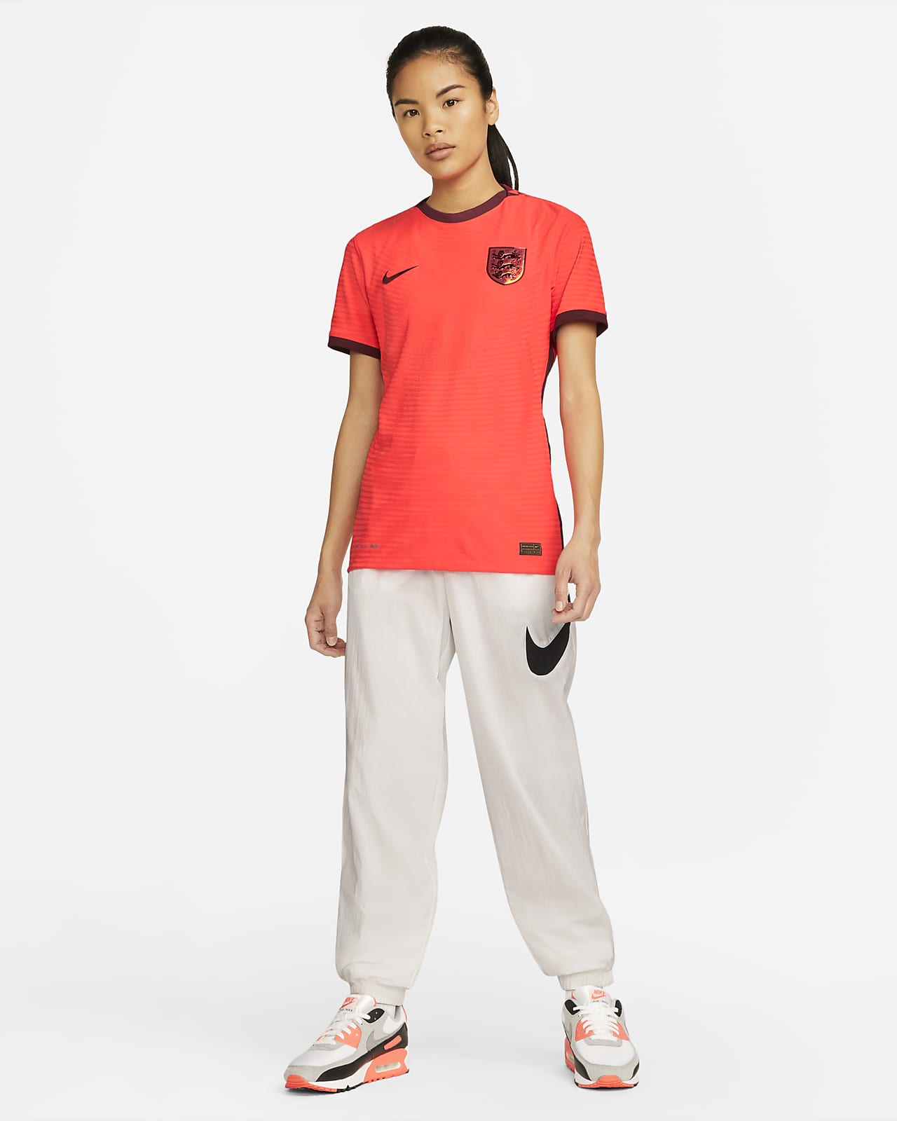The “Bright Crimson” and “Deep Maroon” colouring is a departure from the traditional, while the neck replicates the “cut diamond” styling of the primary design and the iridescent crest and Swoosh for the Lionesses’ change release are also consistent.