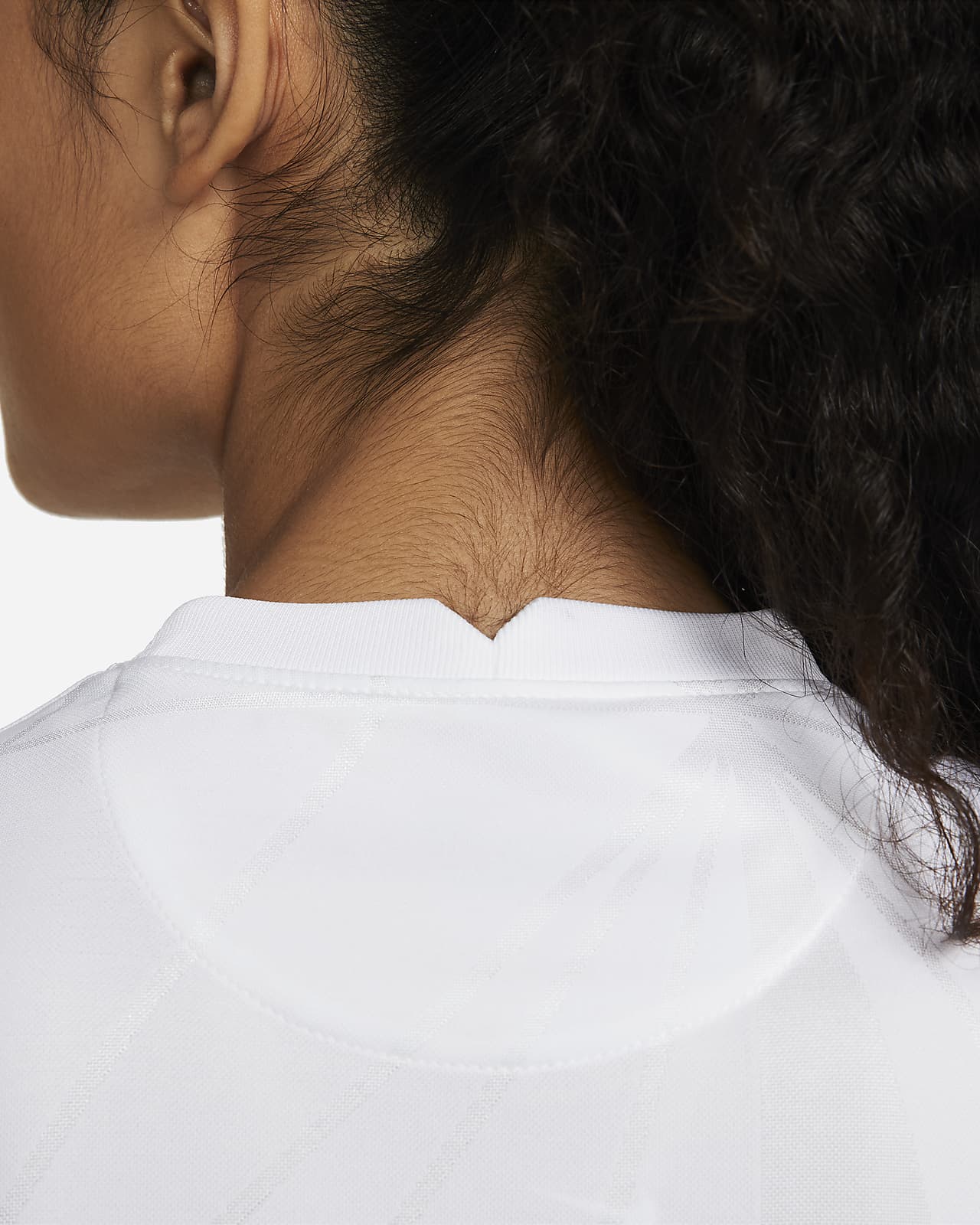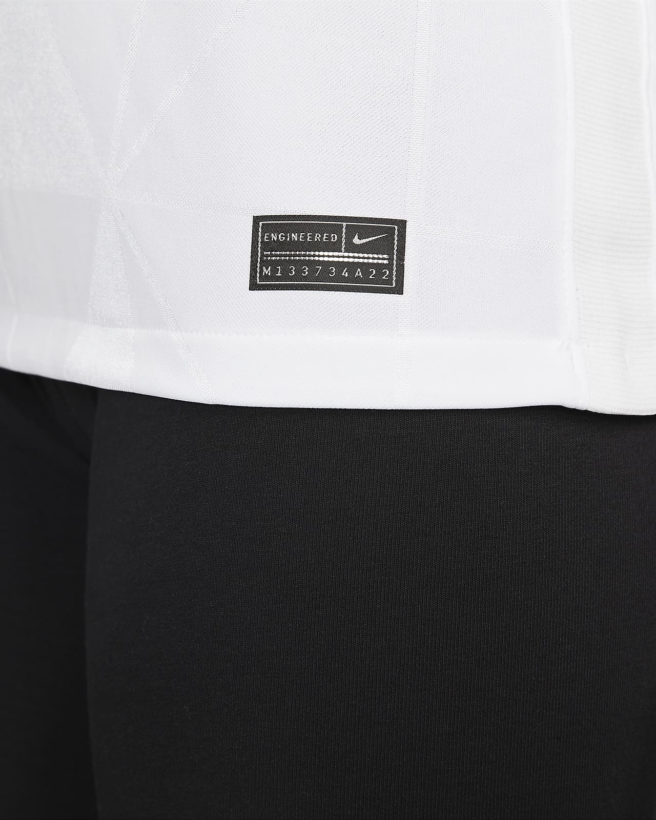 The Euro 2022 design is in white with a cut-diamonds pattern to the jacquard (on the Vapor Match version) and pearlescent crest and Swoosh logo.