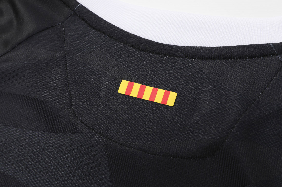 Produced by Kelme, the nominally black-and-white-halved release features blue in the vertical central striping and a full colour crest, with the decoration also extending to a nod to the waves of the local Mediterranean Sea.