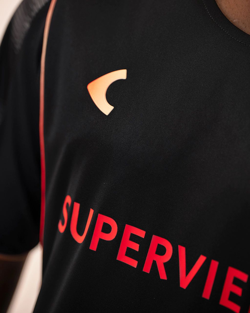 Constructed from a lightweight Ruge performance polyester, the shirt features a smooth outer surface and micro-perforated ventilation zones. These panels are positioned along the sides and under the arms to support airflow and moisture management. The quick-drying material is designed to perform in both match and training conditions.