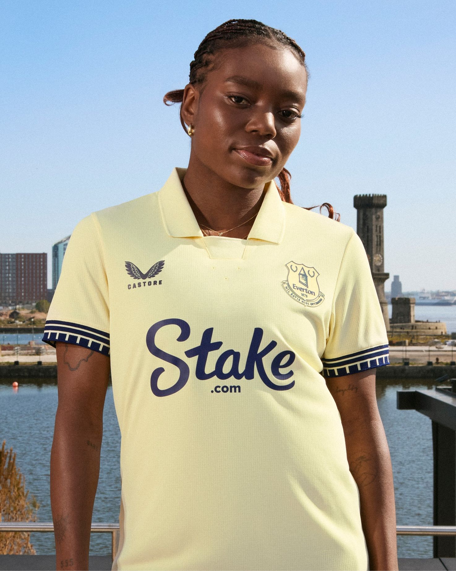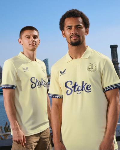 Everton have unveiled their 2025/26 Away kit by Castore, inspired by the dockside surroundings of the Hill Dickinson Stadium.