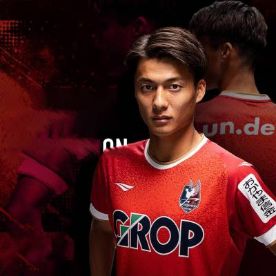 The Japanese J2 League side’s primary release from Penalty is in a range of red tones with gold-trimmed neck and cuffs, while the change is in white with a dual-coloured lightning bolt.