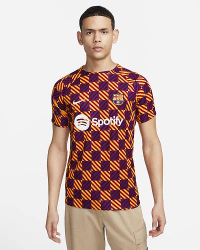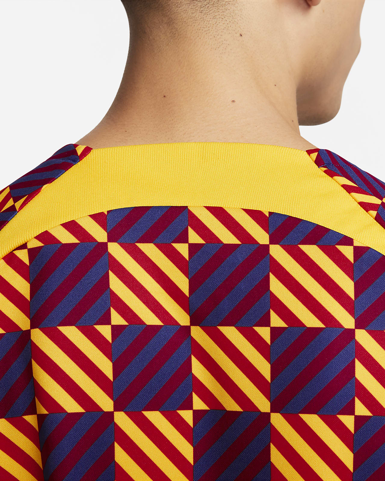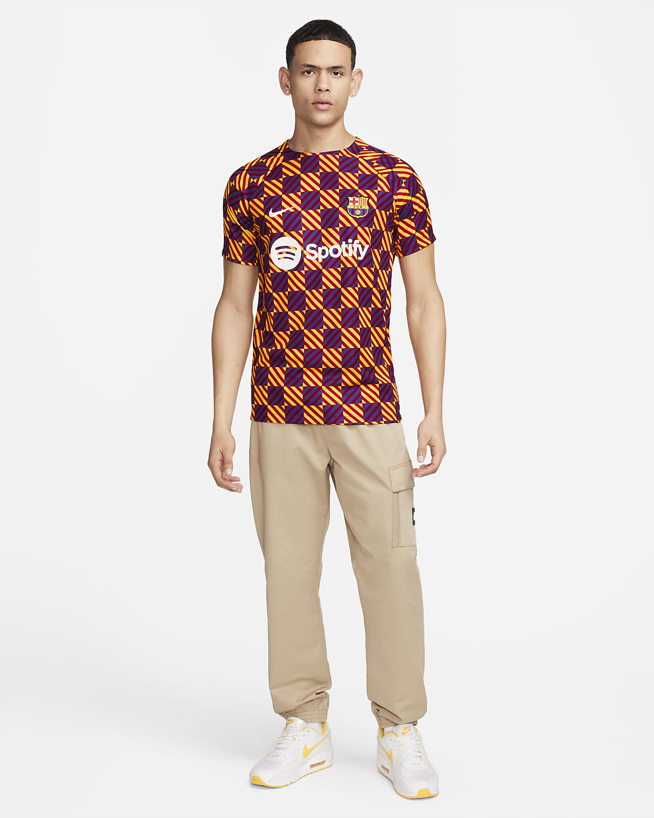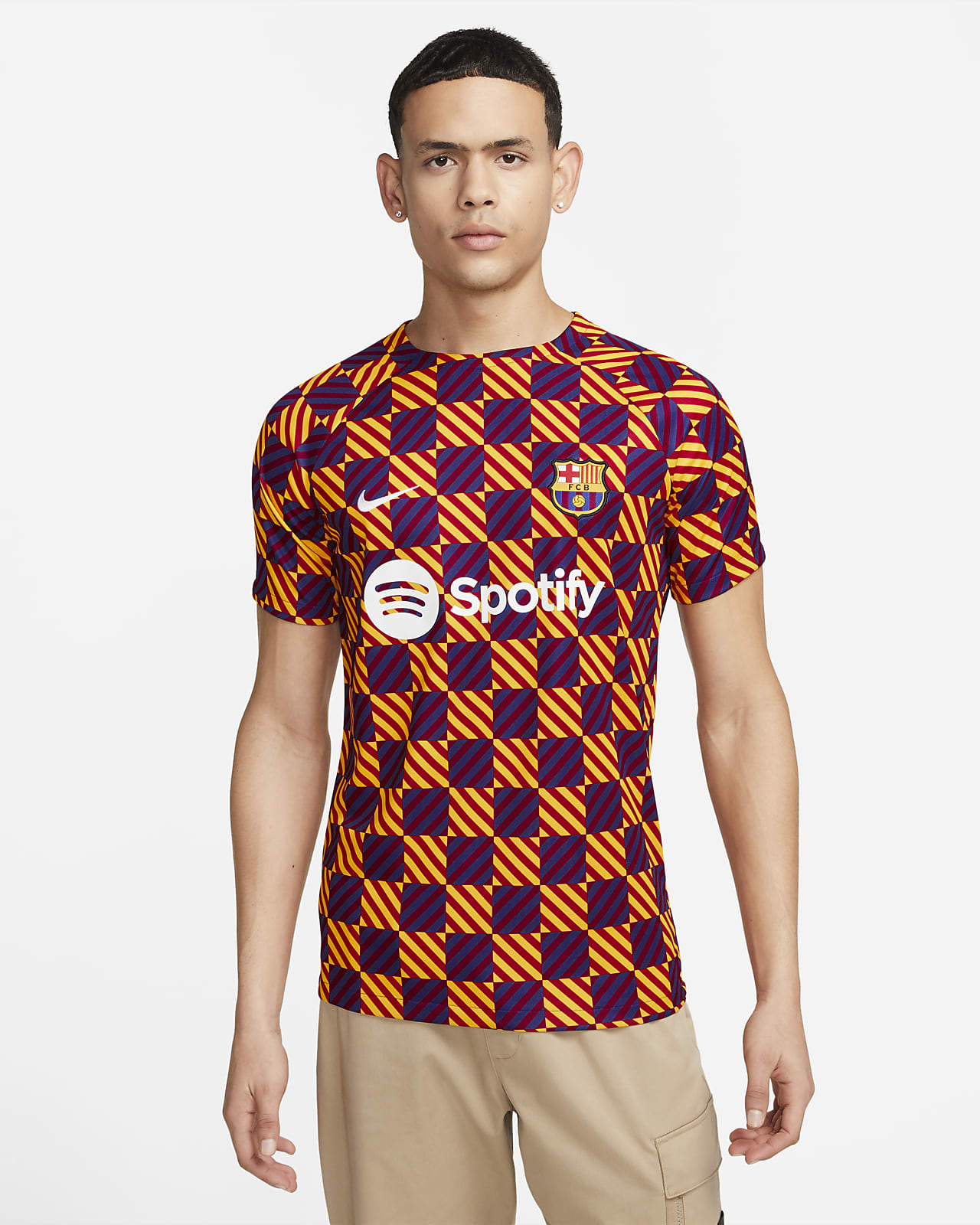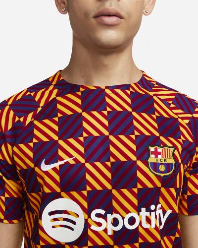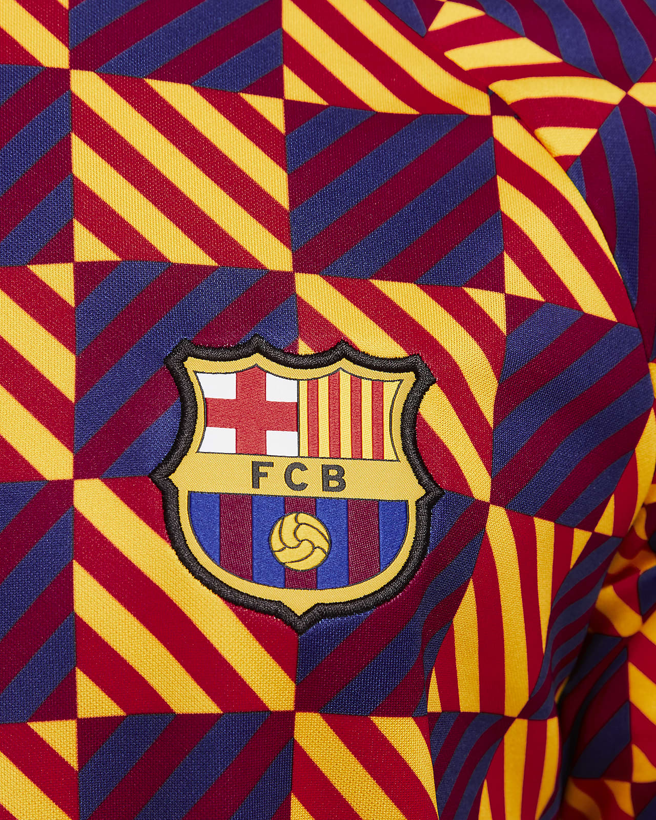 Worn by the first team players to prepare for La Liga matches, this Nike shirt boasts the FC Barcelona crest patch and an embroidered Nike logo.