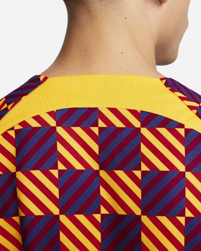 The latest FC Barcelona pre-match shirt features a dazzling design in an Amarillo/White colour scheme.