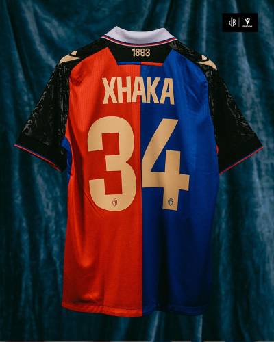 The blue and red halves are present and correct on the 2023-24 primary release, this time with black sleeves featuring a repeated-crozier pattern to pay tribute to the Swiss city the Super League side represents.