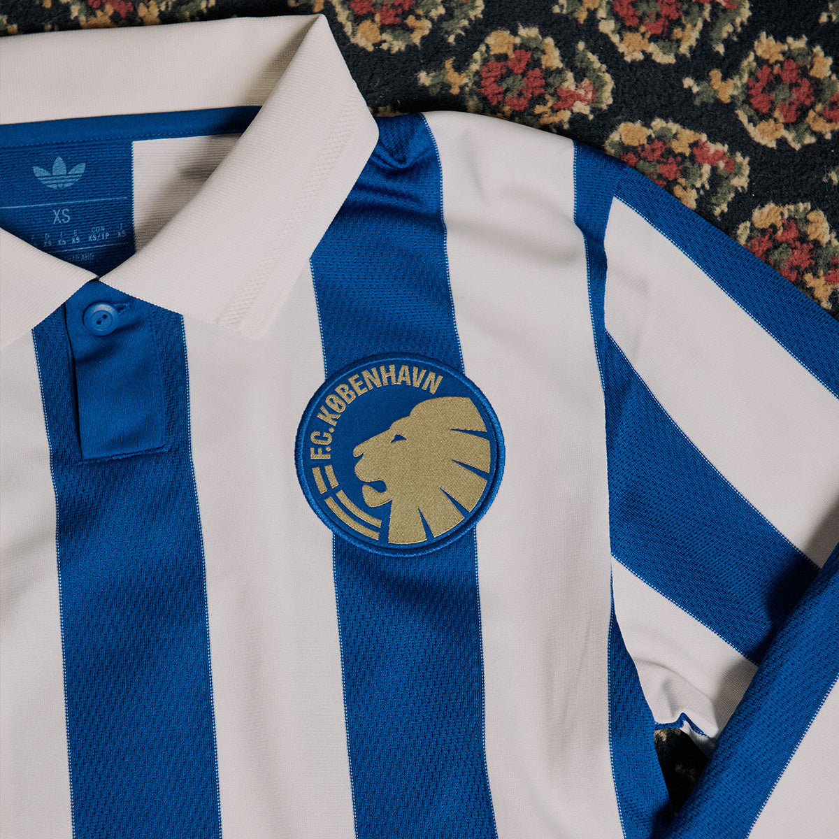 The new FC Copenhagen football shirt will be worn in the Danish Superliga fixture against Vejle Boldklub at Parken, paired with blue shorts and matching socks. The limited-edition release is available through official retail channels and online.