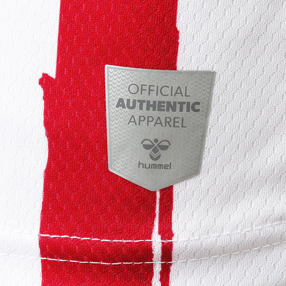 Boasting the Danish supplier’s “BEECOOL” performance technology, the shirt carries the main sponsor branding in red, while the crest is in full colour and Hummel’s own logos are in black, on the chest, and red, in the case of the famous shoulder chevrons.