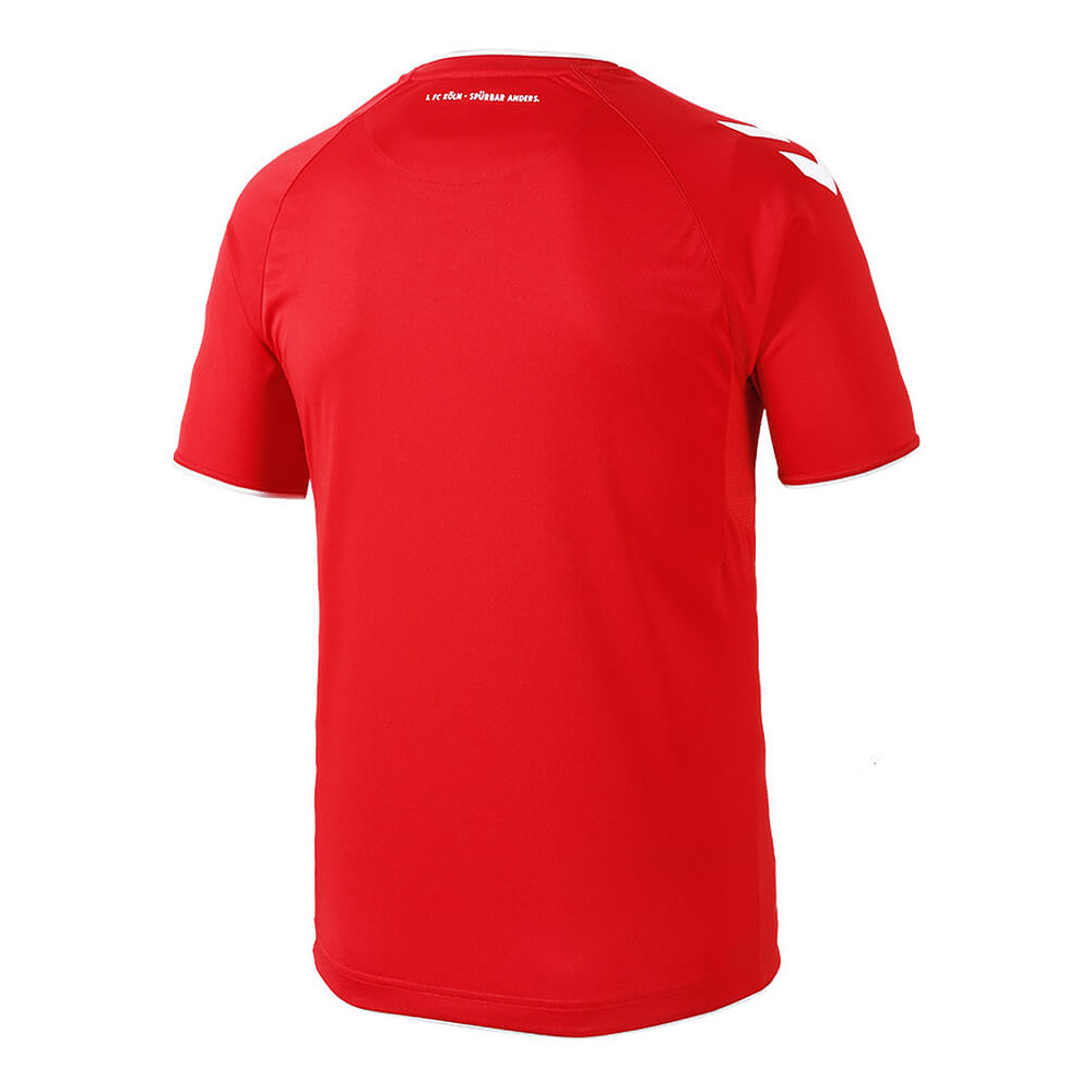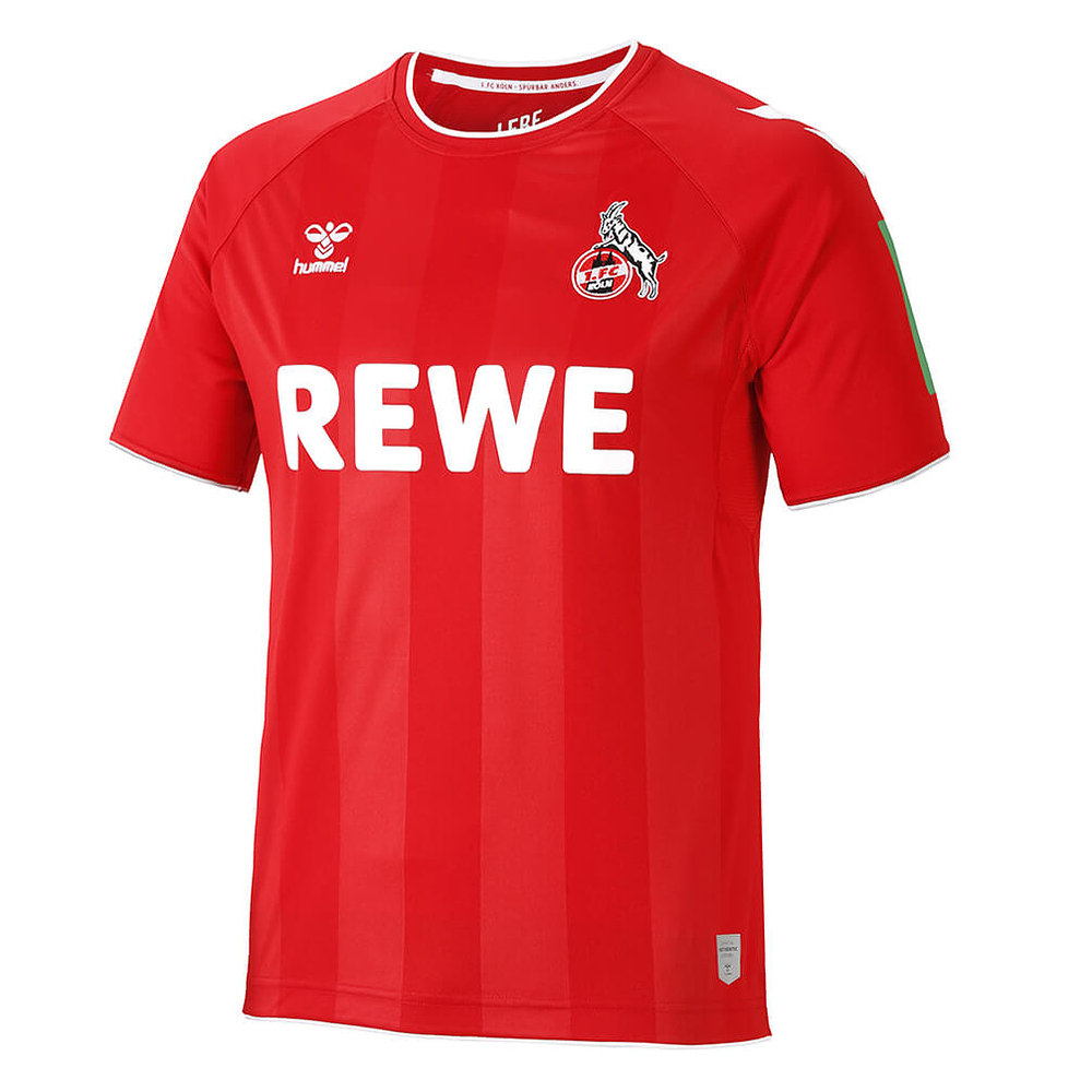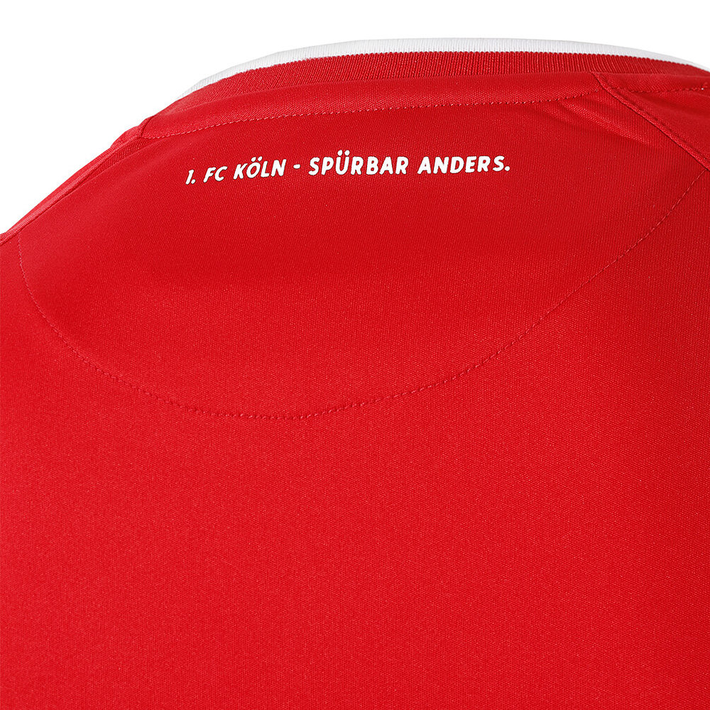 The upper back carries script reading “1. FC KÖLN – SPÜRBAR ANDERS” (“1. FC KÖLN - NOTICEABLY DIFFERENT”) and the kit will be completed with matching red shorts and socks.