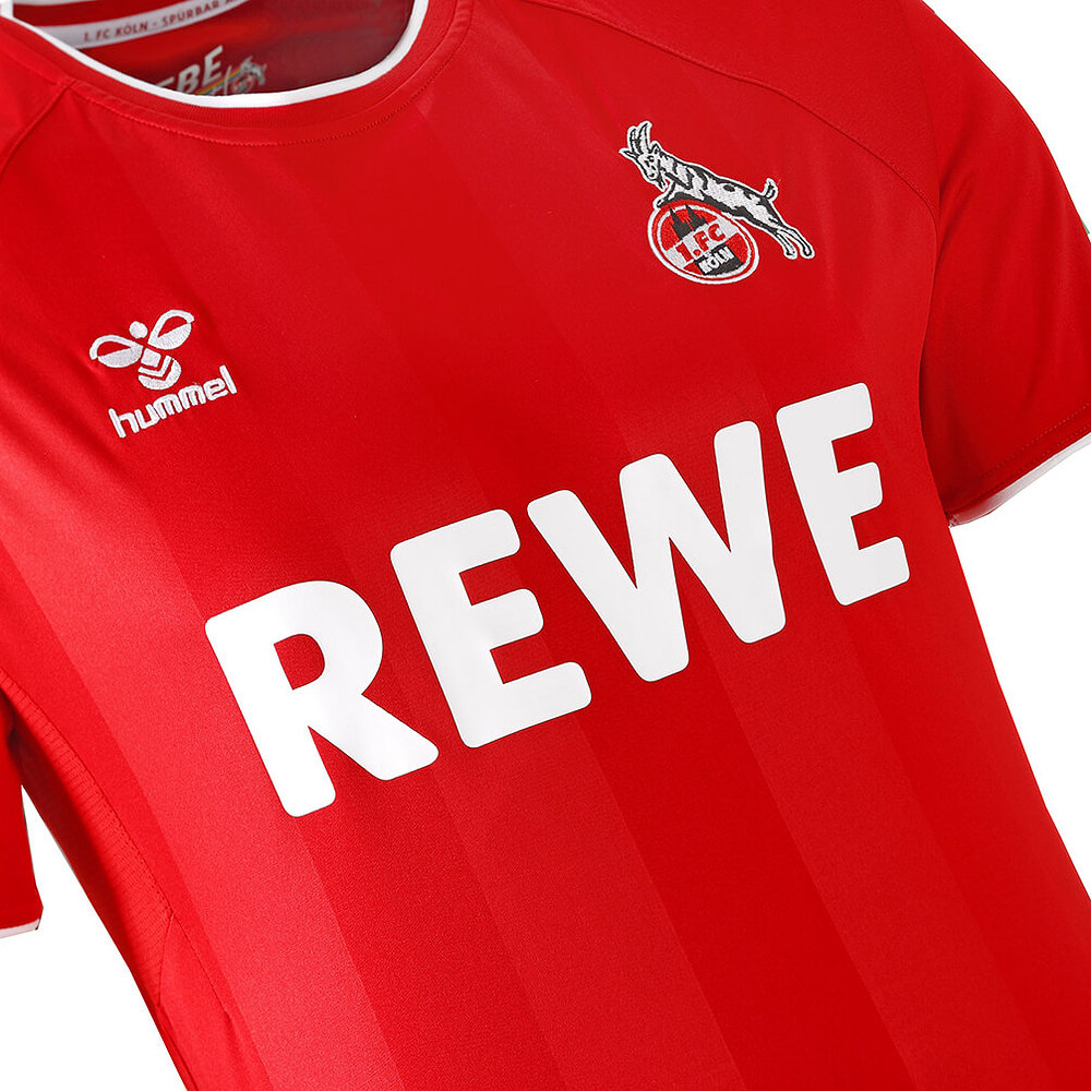 Minimal white trim is used on the neck and sleeve cuffs, with the Danish manufacturer’s branding also in white - along with the “REWE” central sponsorship logo - and the crest is fully coloured.