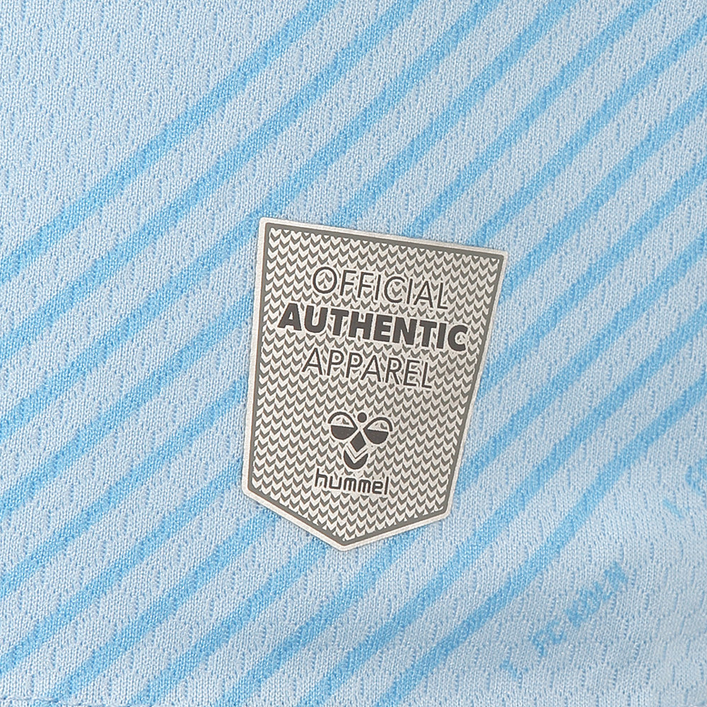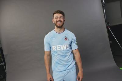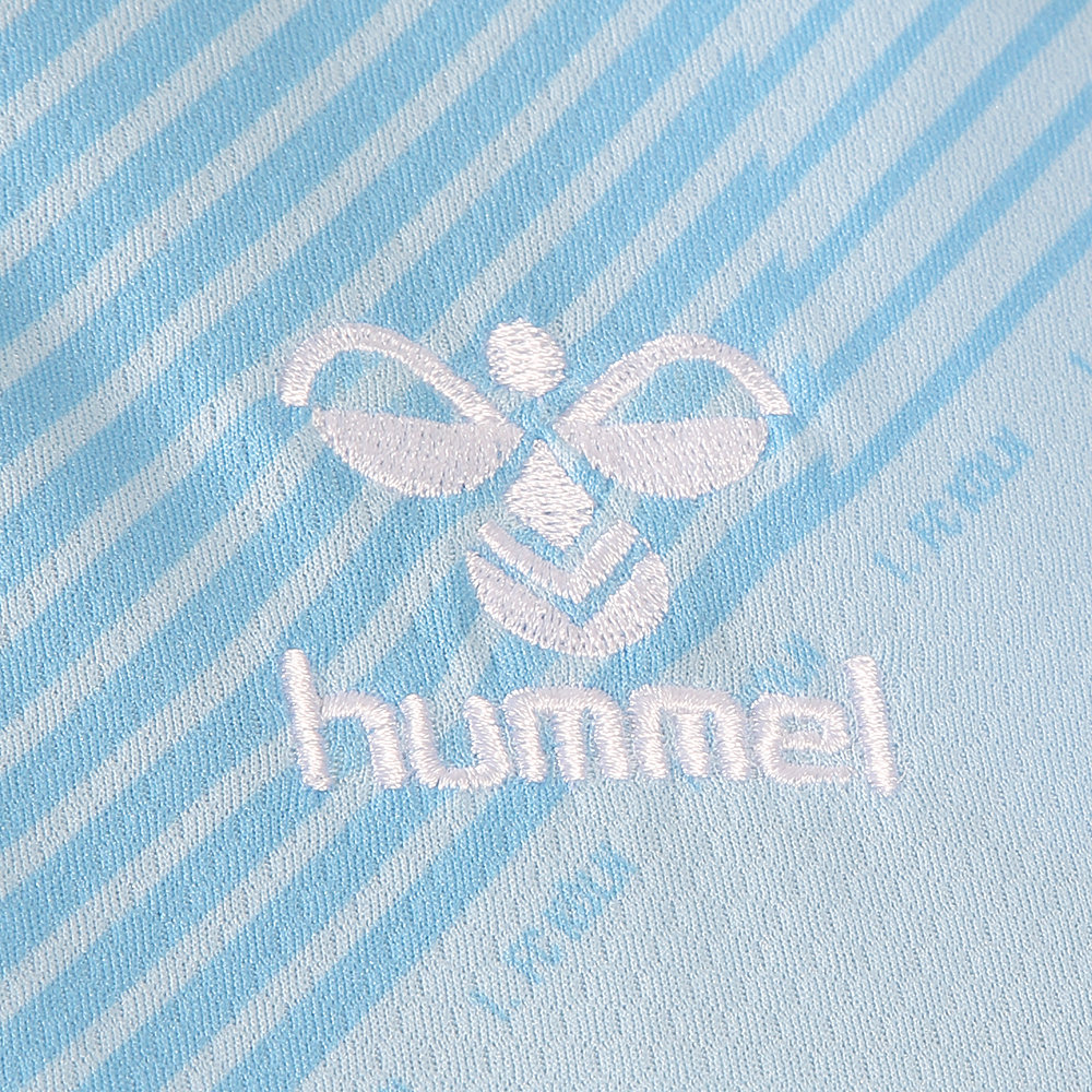 In sky blue with a diagonal patterning effect that nods to the Danish-based supplier's back catalogue, the German Bundesliga side’s 2023-24 secondary-change release also features white detailing and red trim.