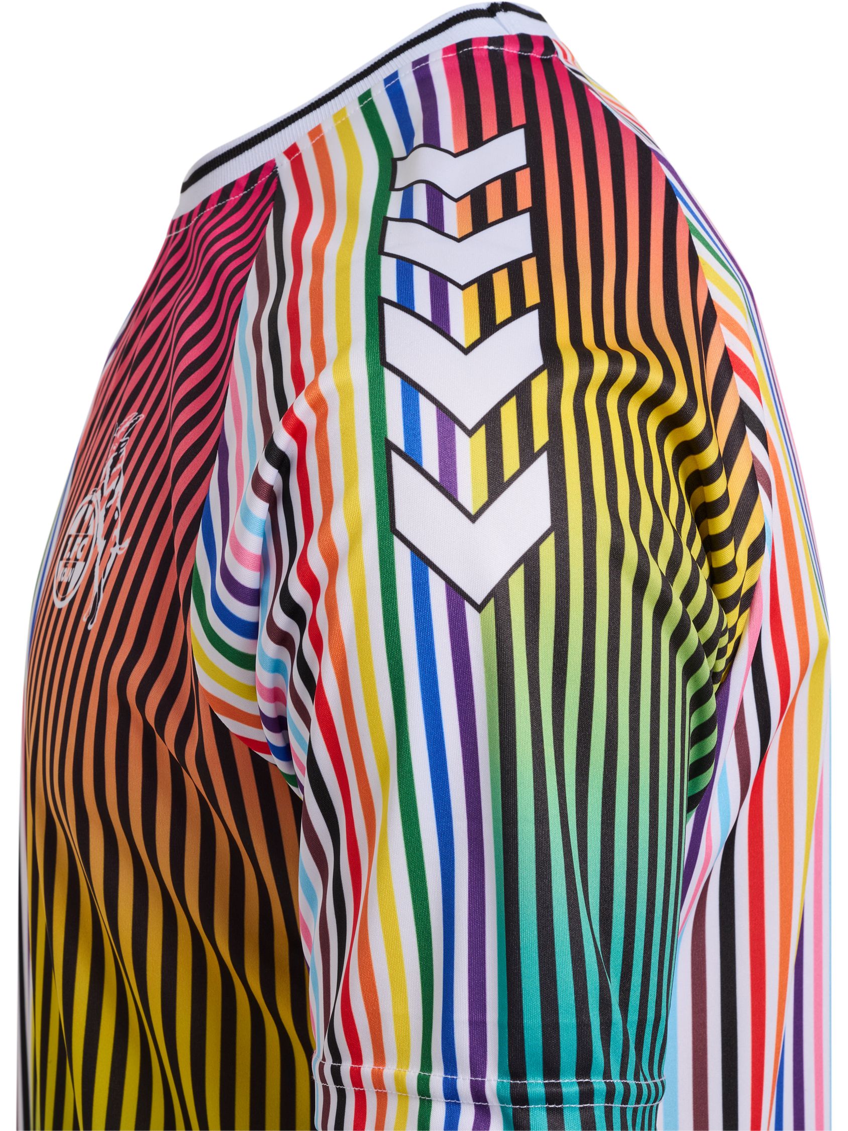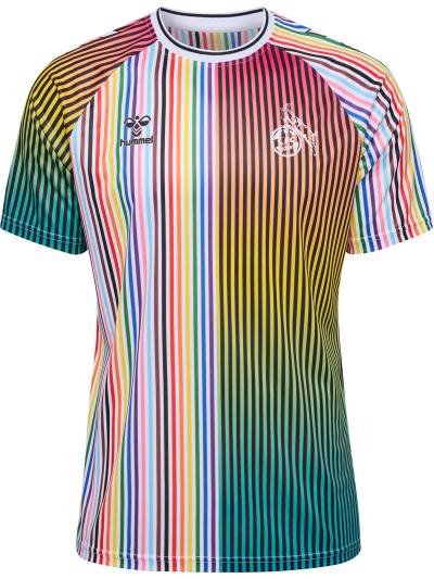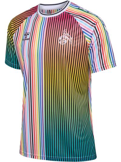 Drawing inspiration from the renowned Denmark ’86 jersey, this design also graces numerous hummel-affiliated clubs this season, honouring their milestone. With its striking colours, this jersey aims to shed light on and foster positive transformation.