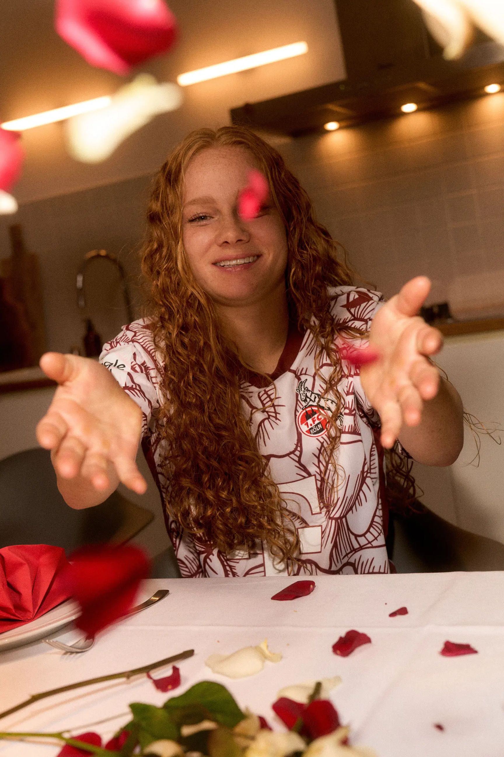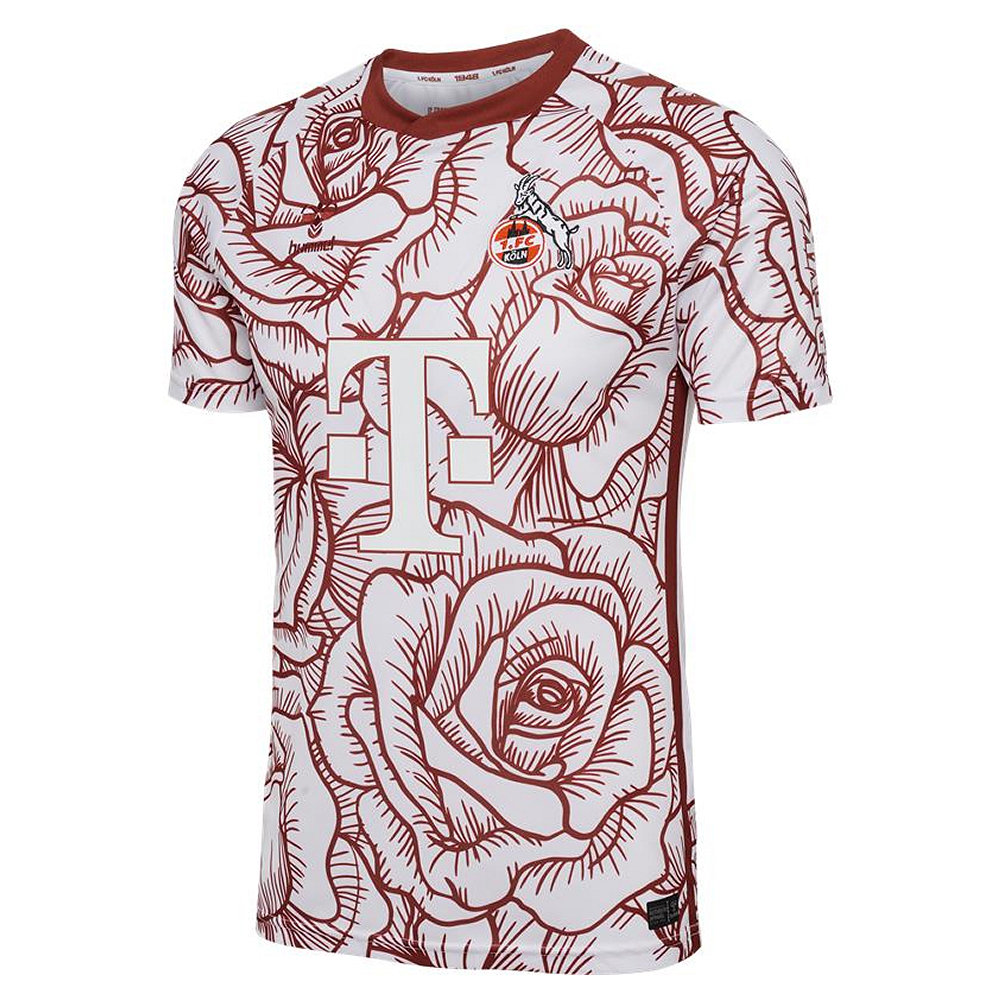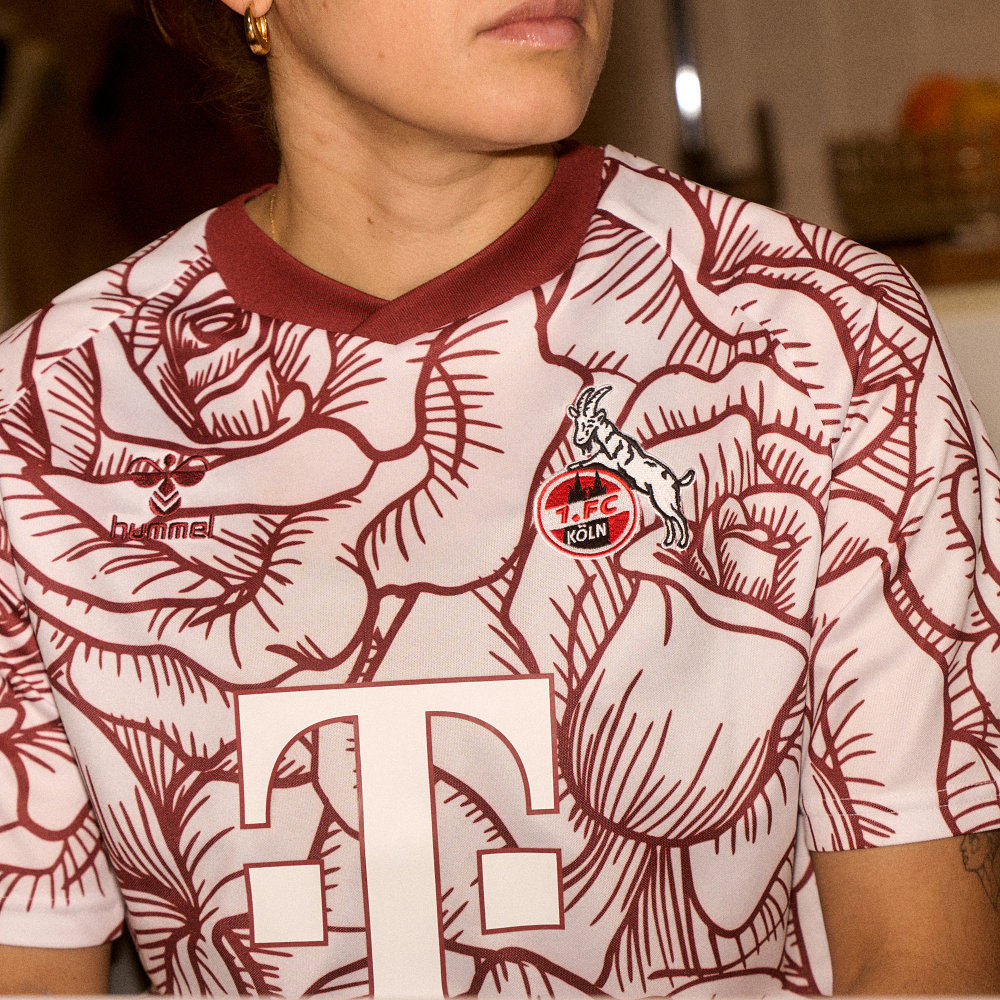 The design features an all-over red rose pattern, symbolising strength and resilience, qualities associated with both the players and the city of Cologne.