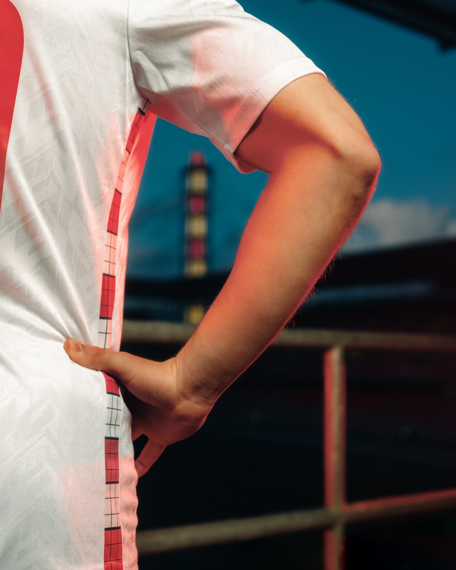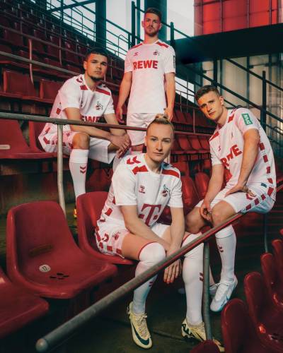 The new Hummel primary release is in white with red and black embellishment and acts as a tribute to Köln’s RheinEnergieSTADION (Müngersdorfer Stadion) home ground - as well the fans who attend matches there - with the distinctive illuminated corner structures depicted in side panels.