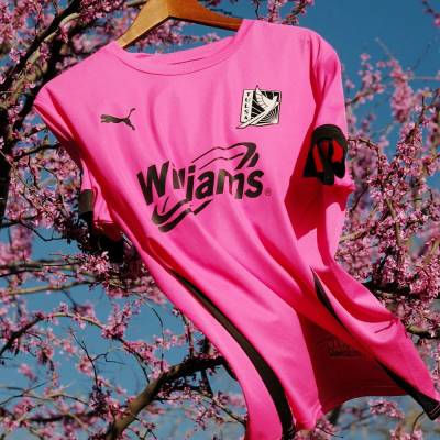 This decoration is largely in black, matching the partner logos and trim, and the kit will be completed with matching pink shorts and complementing socks.