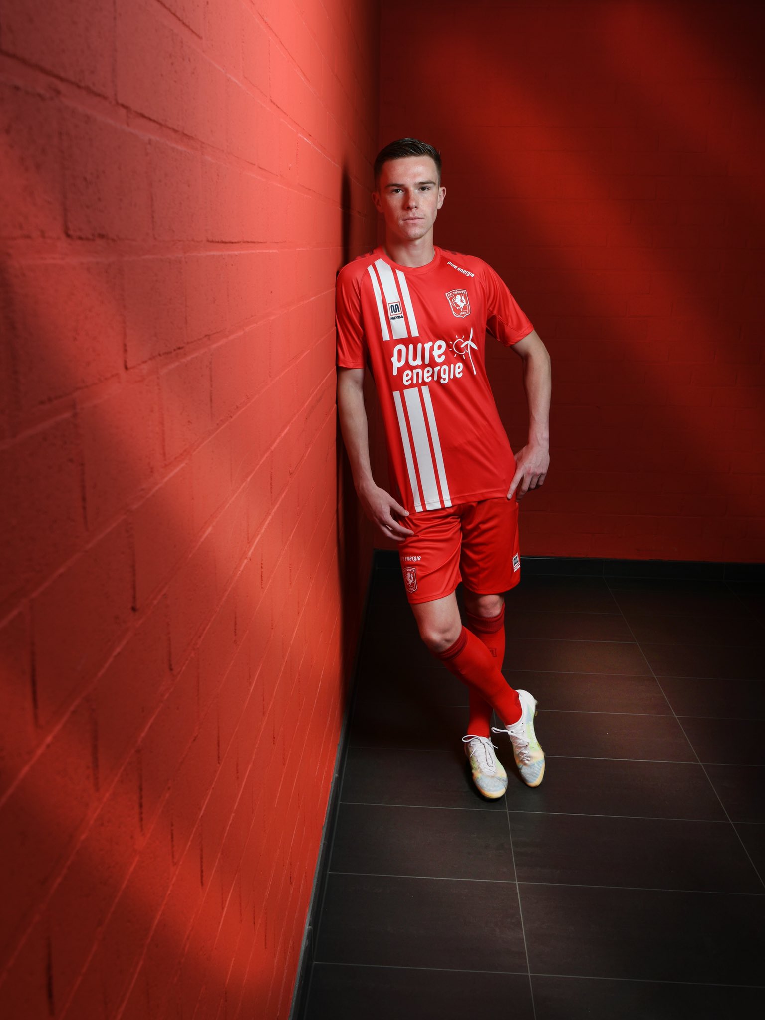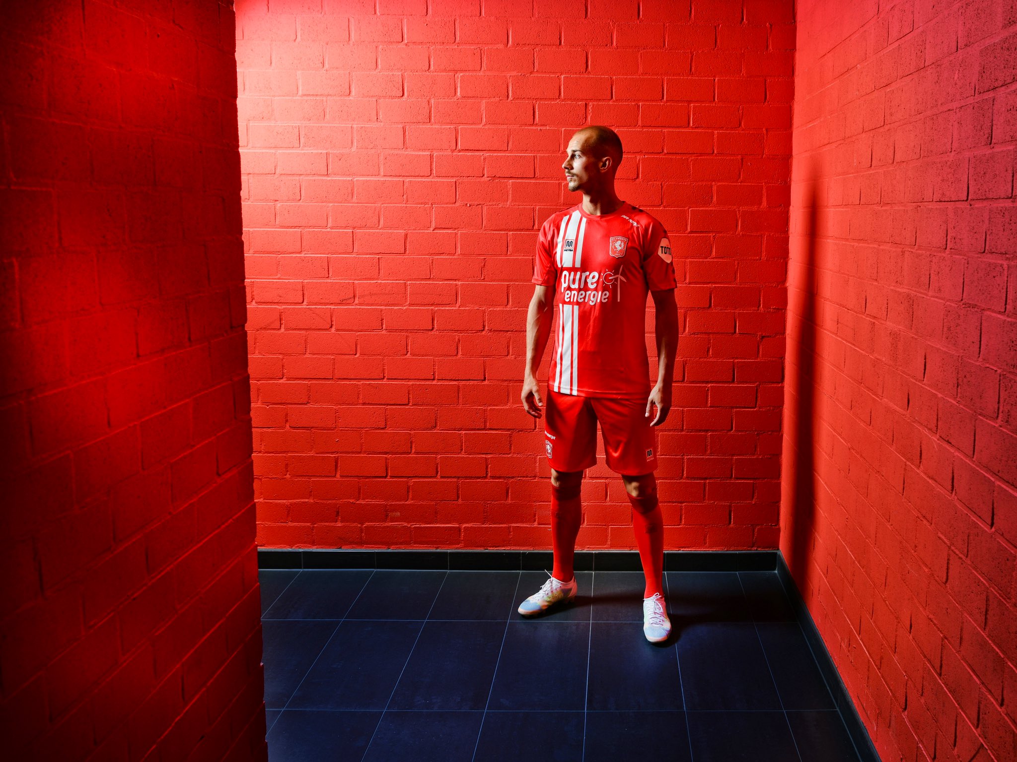 In red with white striping running behind the manufacturer’s logo, the new design nods to versions worn during Twente’s European exploits in the early 1970s and, particularly, the unbeaten record of only 13 goals conceded in the 1971-72 Eredivisie.