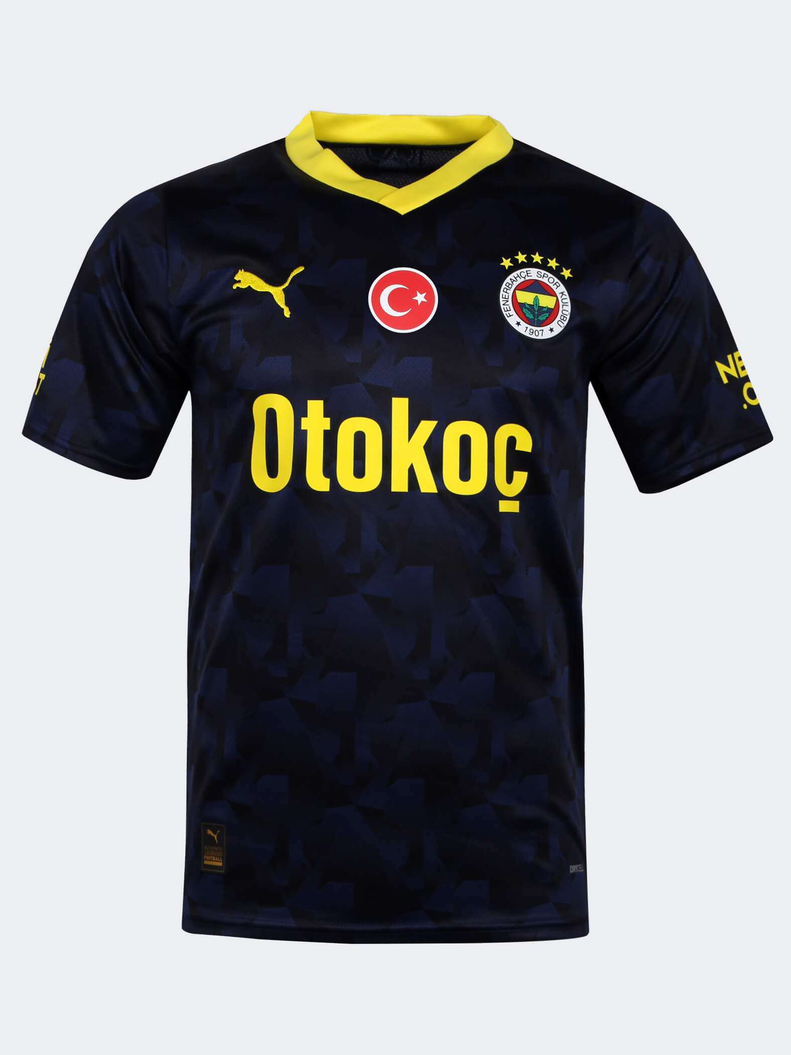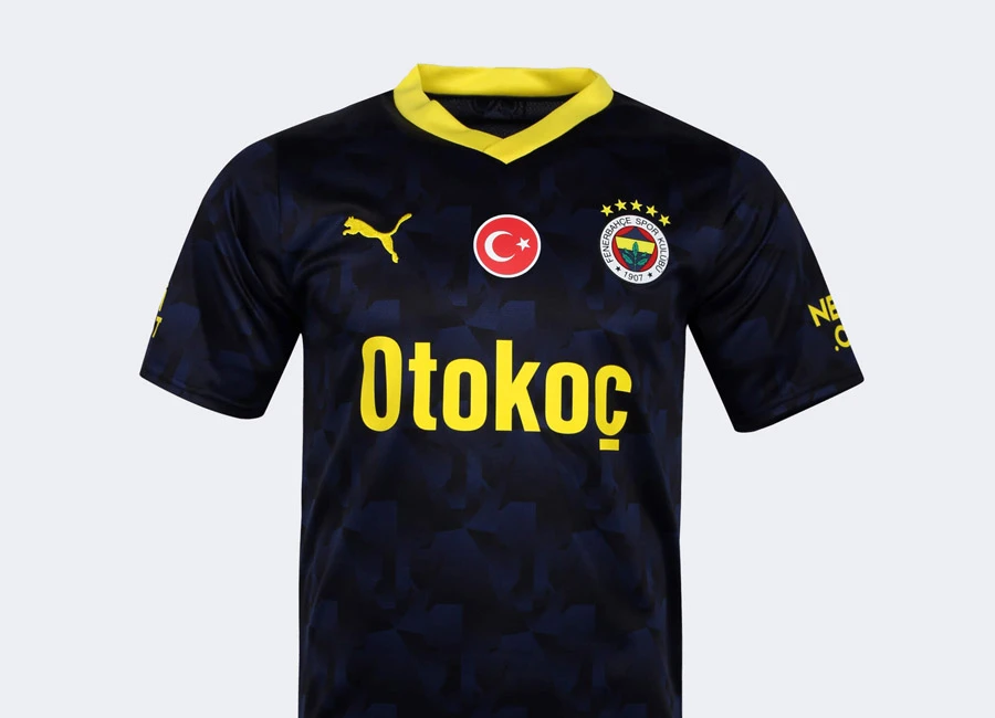 The nominally secondary-change release for the Istanbul-based Turkish Süper Lig side features dark tones of blue in a pattern that represents the bull statue in the nearby district of Kadıköy, and this is overlaid with the logos of partners/sponsors - including supplier Puma - in yellow.
