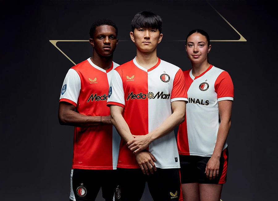The shirt continues the traditional red and white halves, now featuring the updated Feyenoord crest on a match kit for the first time since the club announced the change in July last year. The red tone of the shirt has also been adjusted to align with the refreshed visual identity.