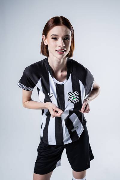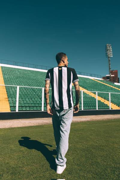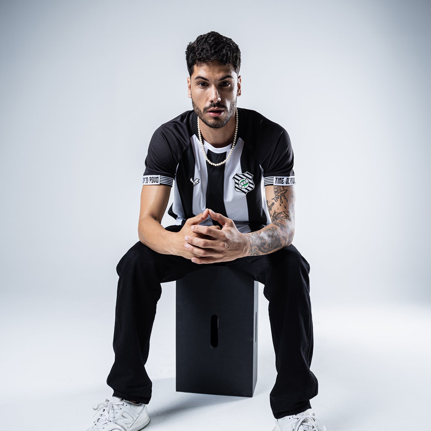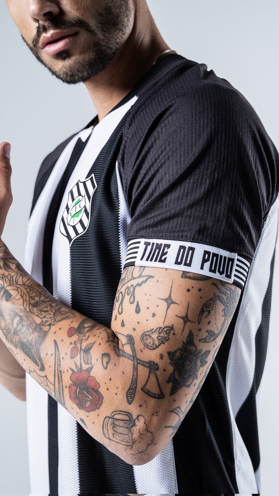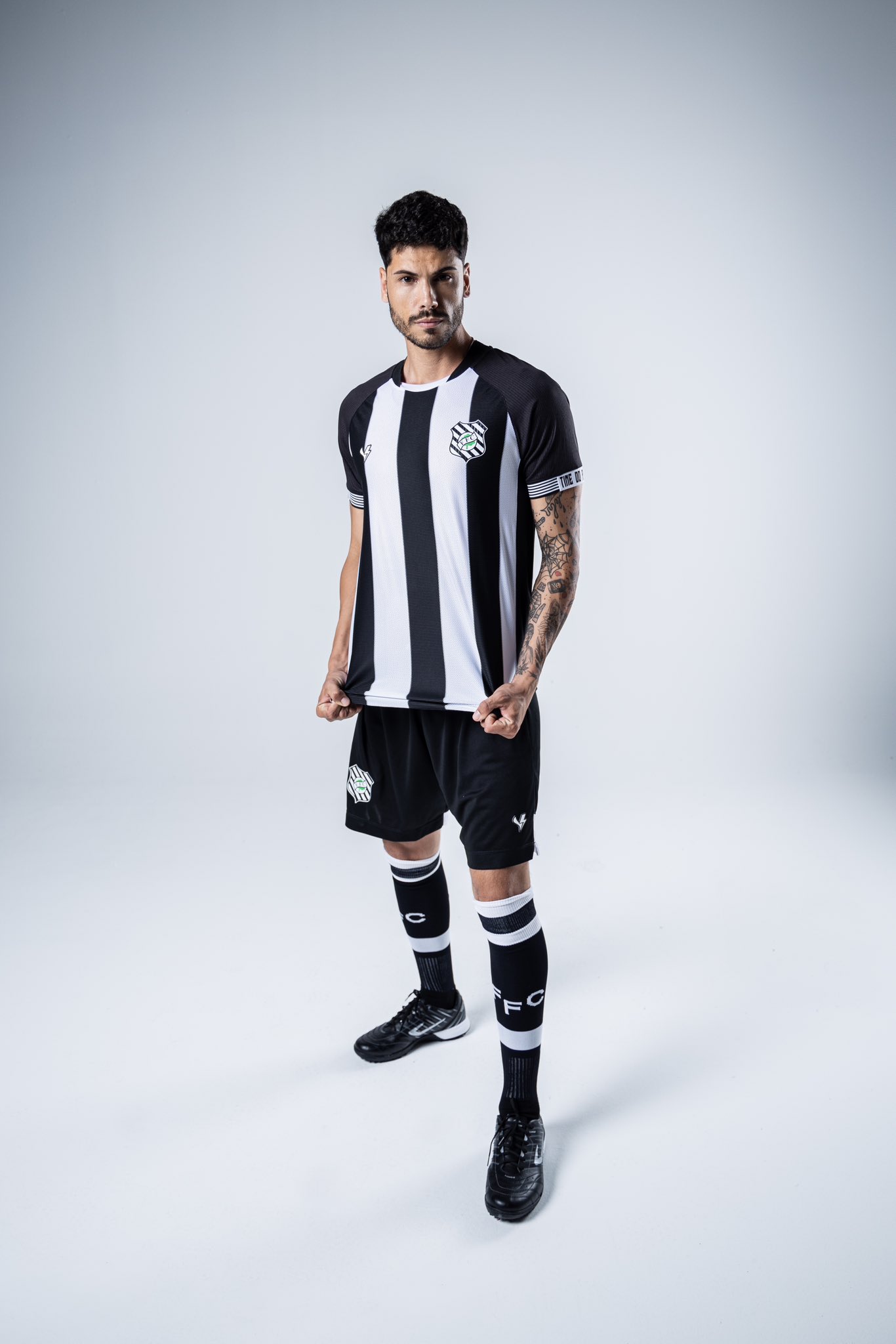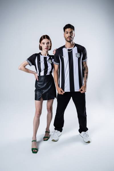 Featuring black-and-white stripes and the crest in standard, full-coloured form, the 2023 design is further decorated with the legend “TIME DO POVO” (people’s team) on the cuffs.