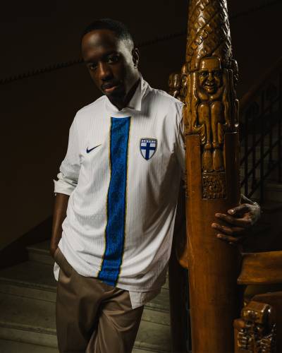 This is the Finland national team's new home shirt for 2025–26, created by Nike in collaboration with Finnish artist and designer Klaus Haapaniemi.