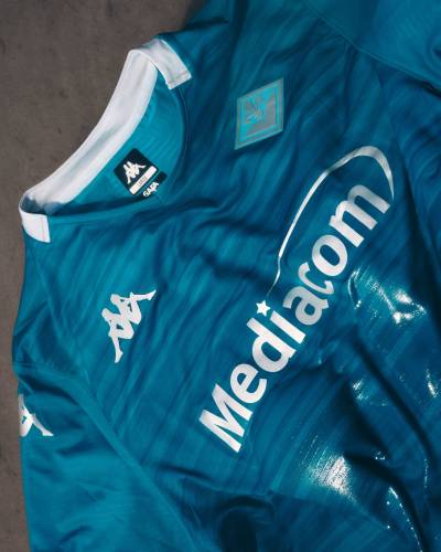 The full kit includes matching teal shorts and socks, and will be worn during selected matches in the upcoming season.
