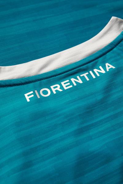 Inside the collar are the coordinates of the Ponte Vecchio and a lyric in Italian that reads, “Sull’Arno d’argento si specchia il firmamento” (On the silver Arno the firmament is mirrored), linking the kit to Florence’s poetic and architectural heritage.
