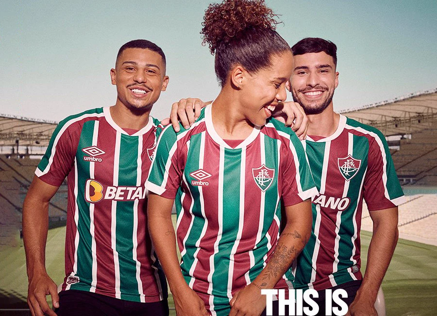 Celebrating the Brazilian side’s 120th anniversary, the 2022 design boasts the traditional look of garnet, white and green stripes, with the monogram crest in its shield as is standard.