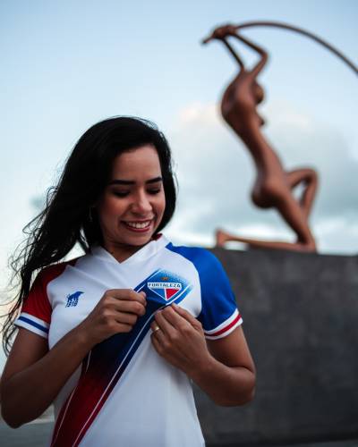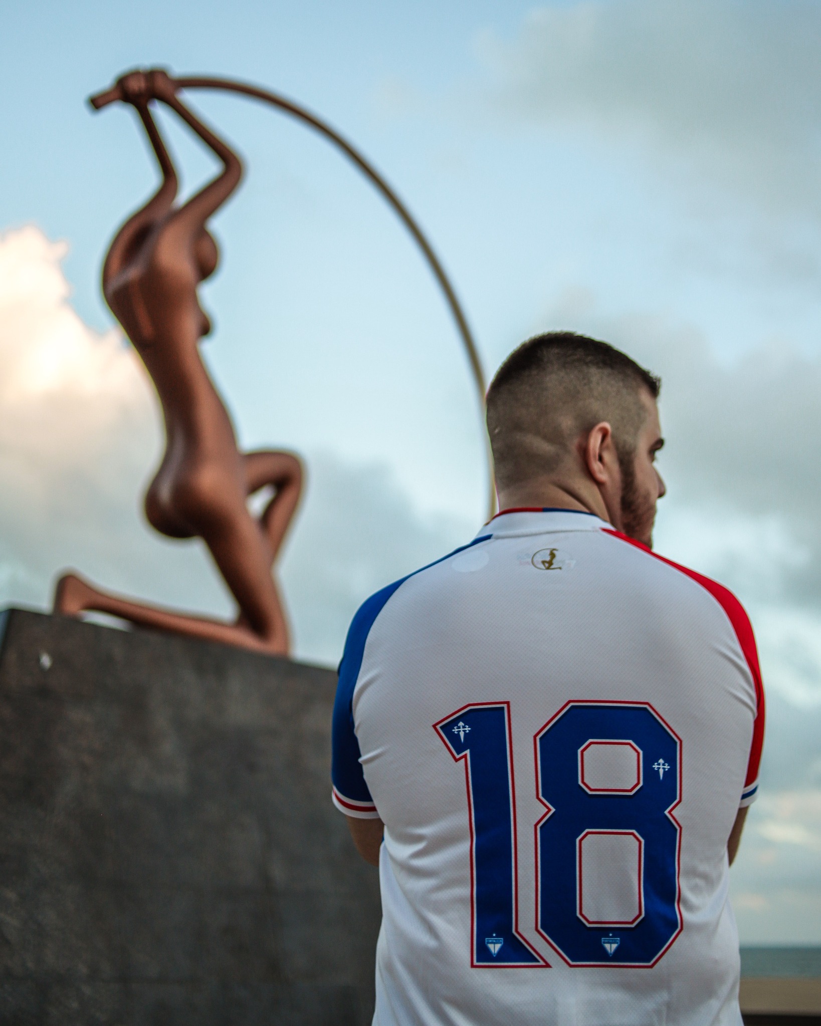Blue and red also provide the fill, in equal measure, for the sash element - nodding to Fortaleza’s home state of Ceará’s coastline - while the crest appears in full colour and an Iracema statue is depicted on the upper back of the “Glória 2023”, which will form a kit with complementing shorts and socks.