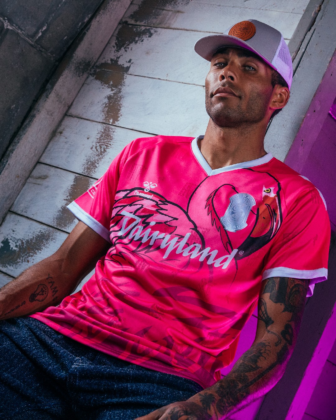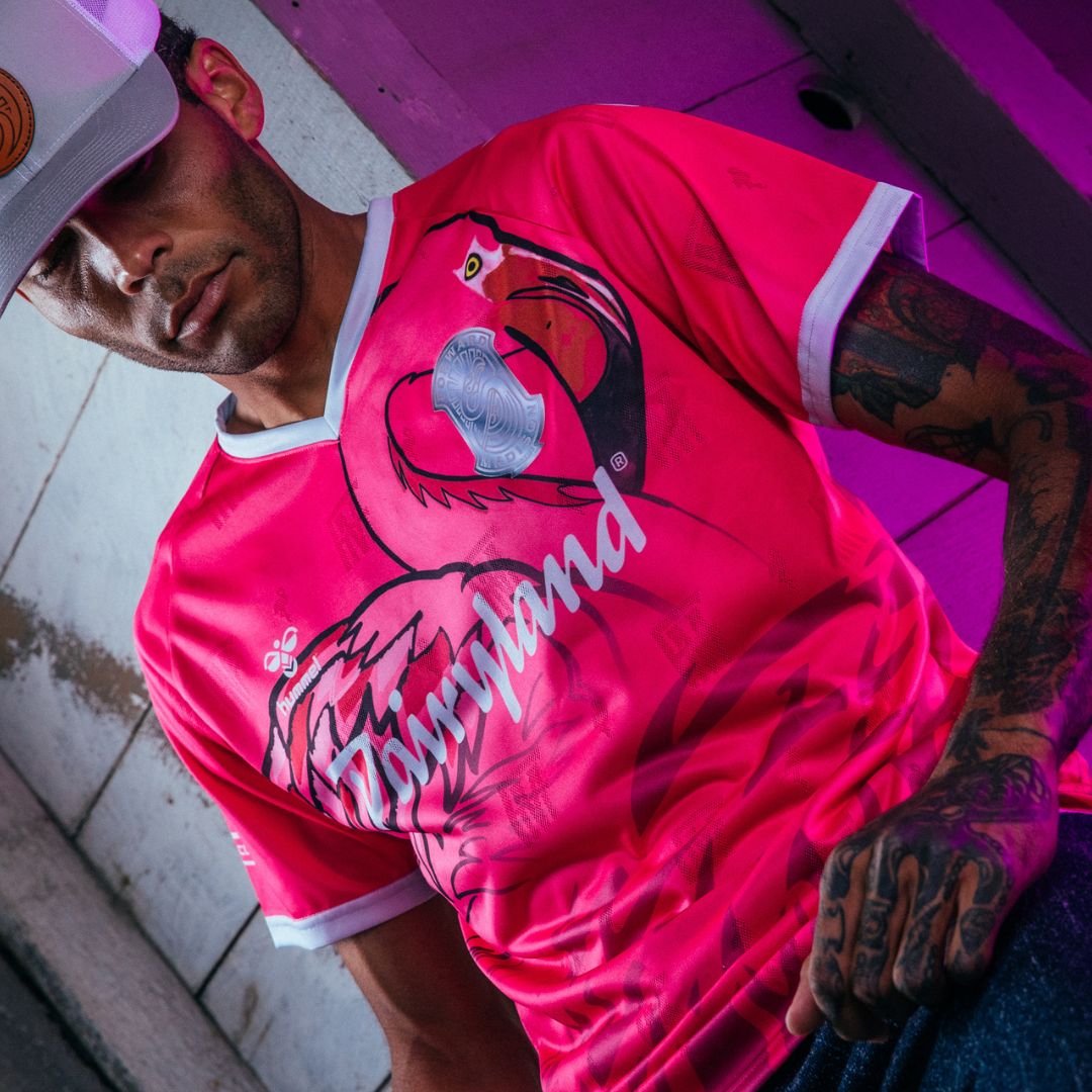 Bringing artwork inspired from various tattoo styles to a football shirt, the pINK Kit features a hand-drawn flamingo design with varying shades of pink, a bold outline & pops of chrome.