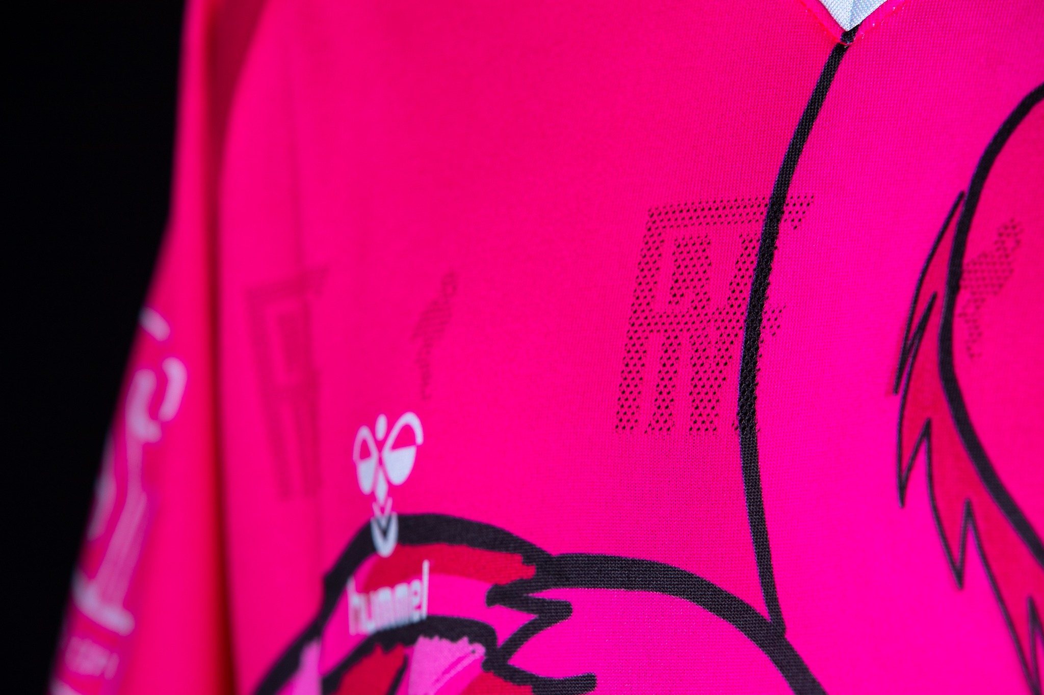 A subtle “FMFC” insignia and flamingo can be seen inlaid into the kit using this unique fabric printing technique.