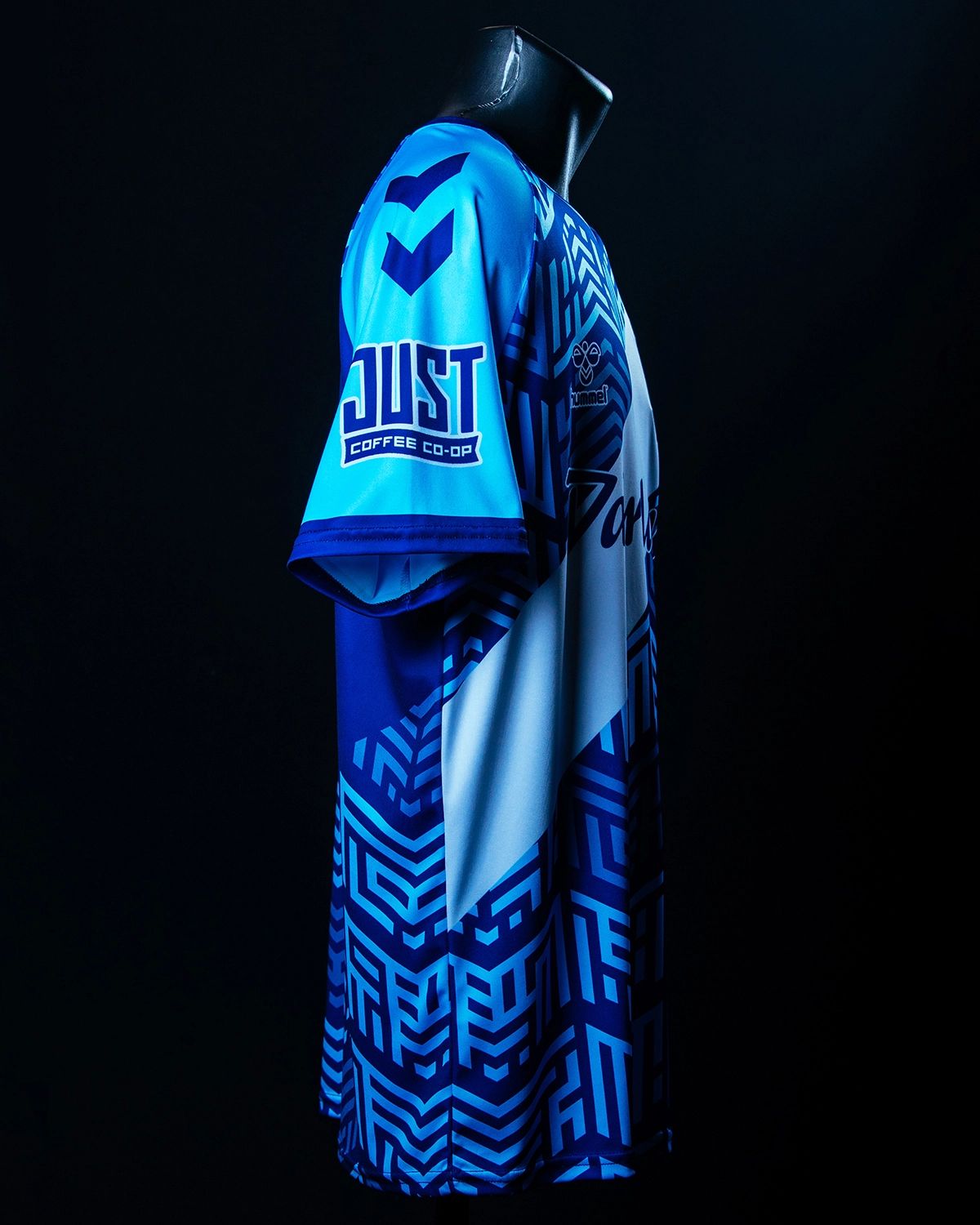 The newly revealed Home Kit reintroduces the primary light blue sleeves in a two-toned blue colourway. The kit showcases a geometric pattern that incorporates significant words like "FMFC", "917", "FLOCK", "1856", and "608". The raised badge on the kit enhances its design, while the dark blue sleeve caps, overlapping collar, and alternate logo on the back add a finishing touch to the new look.