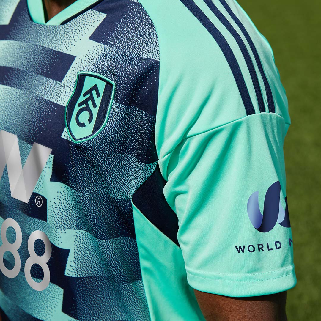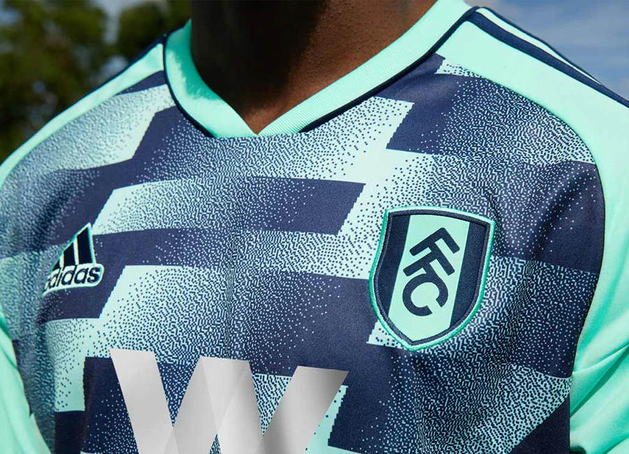 The Club’s 22/23 adidas Away strip is a bold pulse mint, featuring a detailed modern interpretation of the Craven Cottage brickwork across the front of the body.