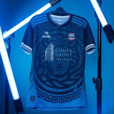 Designed by club designer Morgan O’Brien, the kit showcases Apollo on the front, framed by a Greek ‘Meander’ pattern. This motif, also featured on the shirt cuffs, reflects connections between Greek and Celtic designs.
