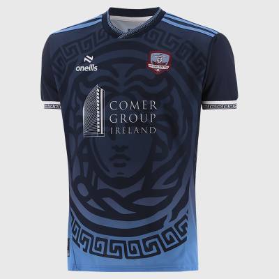 Irish mythology is honoured on the back of the jersey with Cu Chulainn, the legendary Irish hero, surrounded by a Celtic band. Cu Chulainn, son of the Celtic God Lugh, is celebrated as Ireland’s equivalent of Achilles, embodying strength and invincibility in battle.