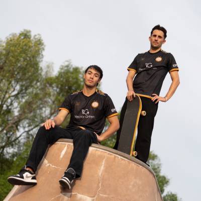 In black/greyscale, the patterned base of this 2024 change release is embellished further with gold and white detailing, including the club branding - crest - and the logos of sponsors/partners, as well as that of supplier FBT.