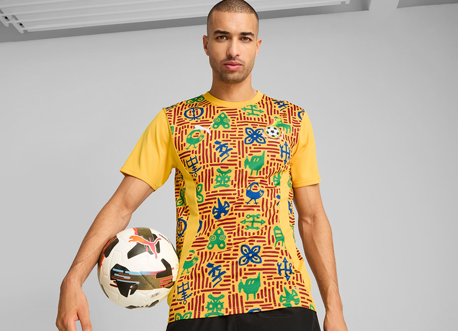 The Puma release for 2025 is in “Yellow Sizzle” with “Intense Red” - along with blue and green - and with all the colouring combining to produce a bold design inspired by Ghanaian artwork.