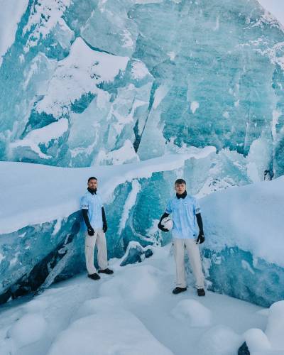 The design features textured patterns mirroring the intricate shapes formed by glaciers. Subtle details on the sleeves, influenced by avittat, honour traditional Greenlandic craftsmanship. These elements pay tribute to iconic attire like kamikker and embroidered national suits.