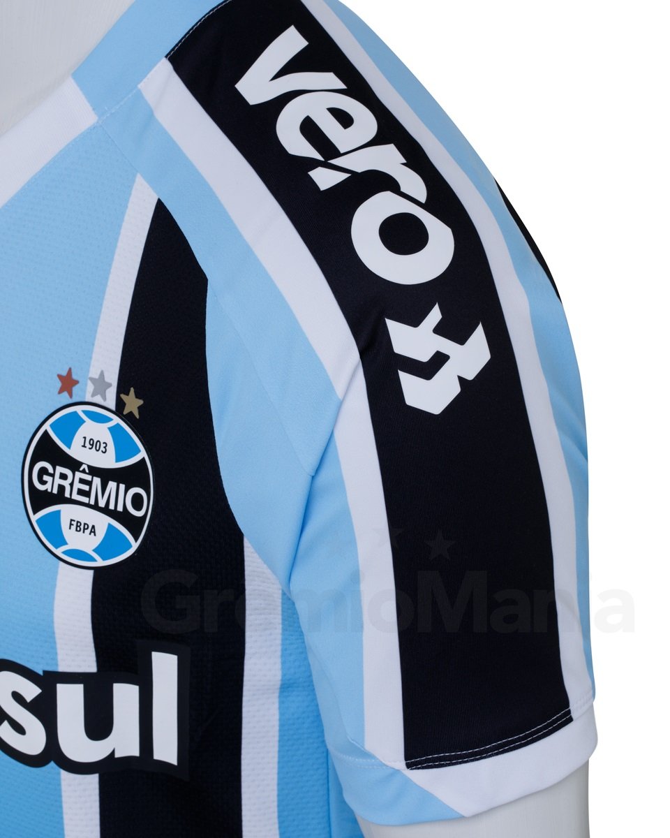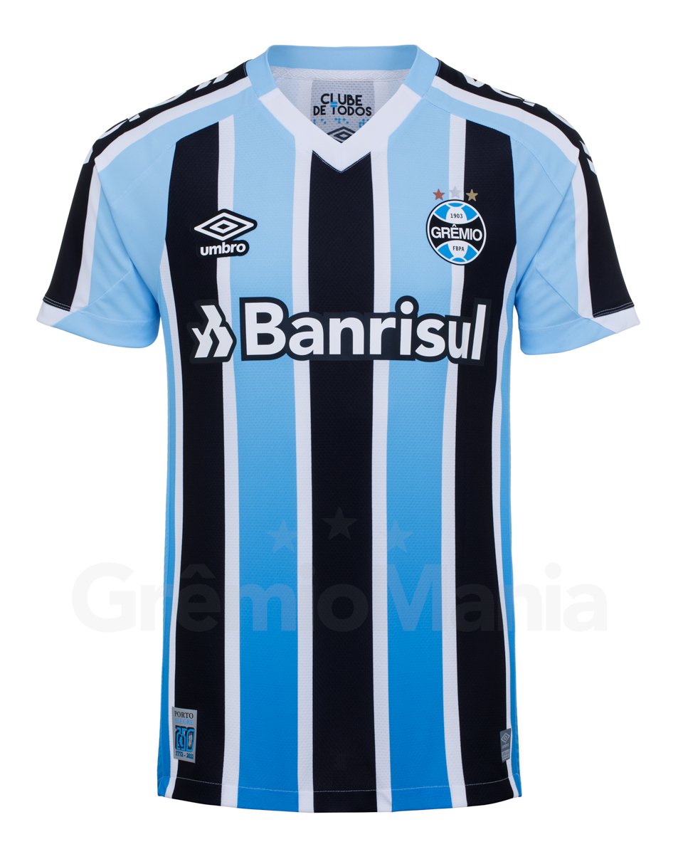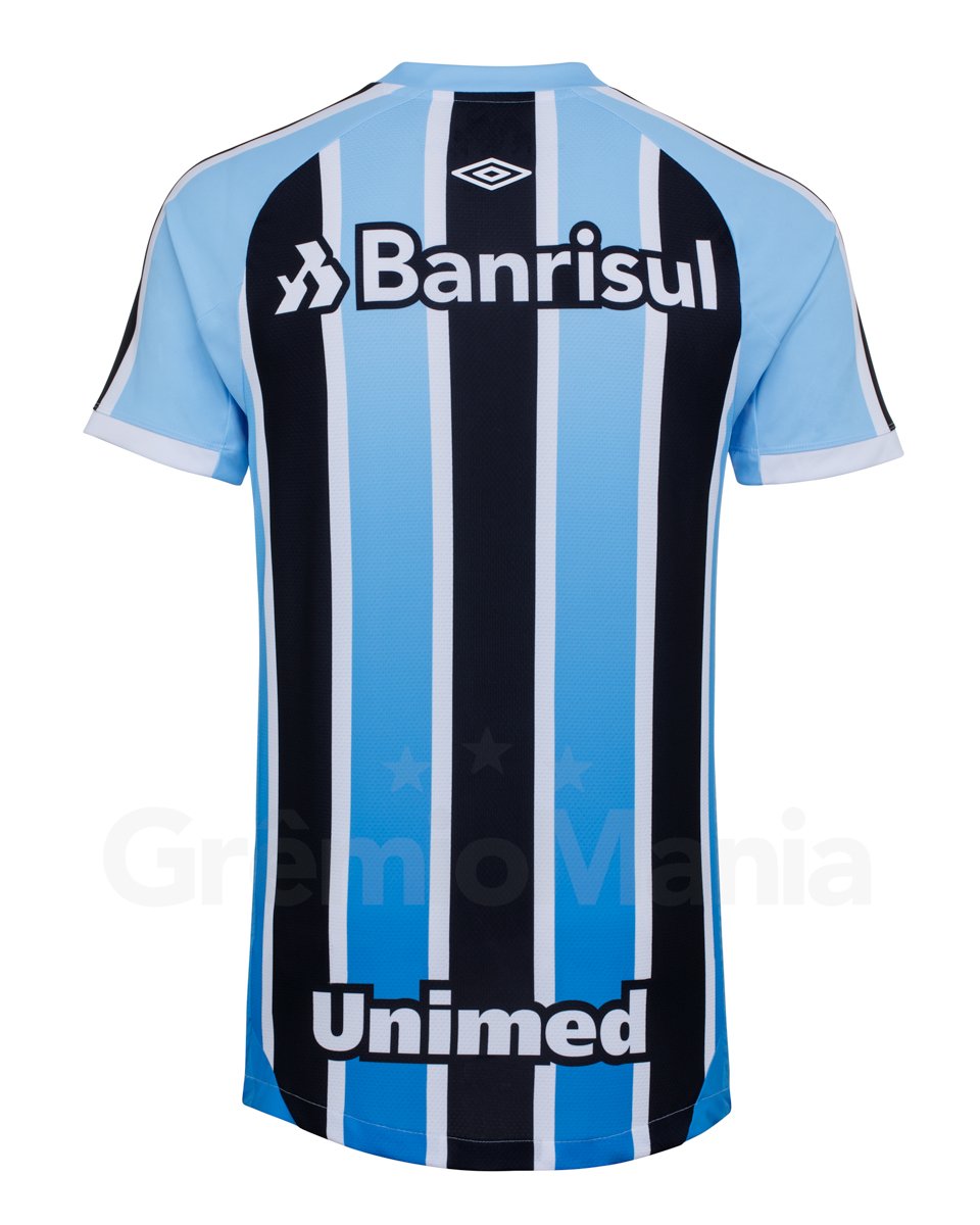 The Campeonato Gaúcho champions’ new primary shirt is in the famous tri-coloured - blue, black and white - striped design, this time with some extra features to solidify bonds with Grêmio’s home city.