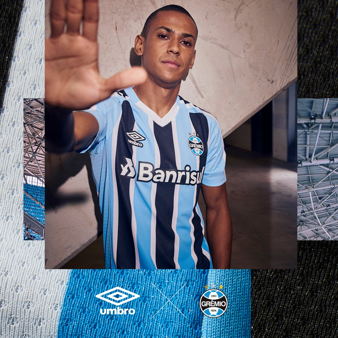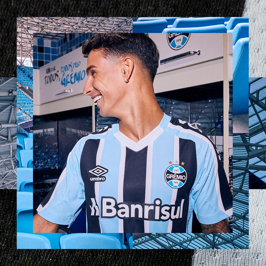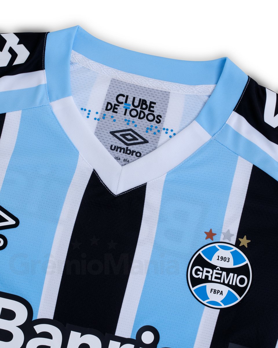 The Campeonato Gaúcho champions’ new primary shirt is in the famous tri-coloured - blue, black and white - striped design, this time with some extra features to solidify bonds with Grêmio’s home city.
