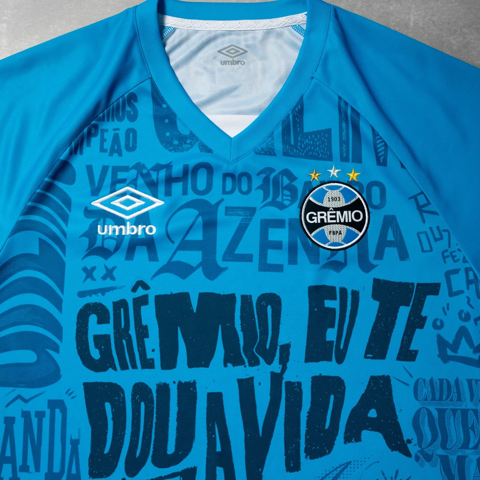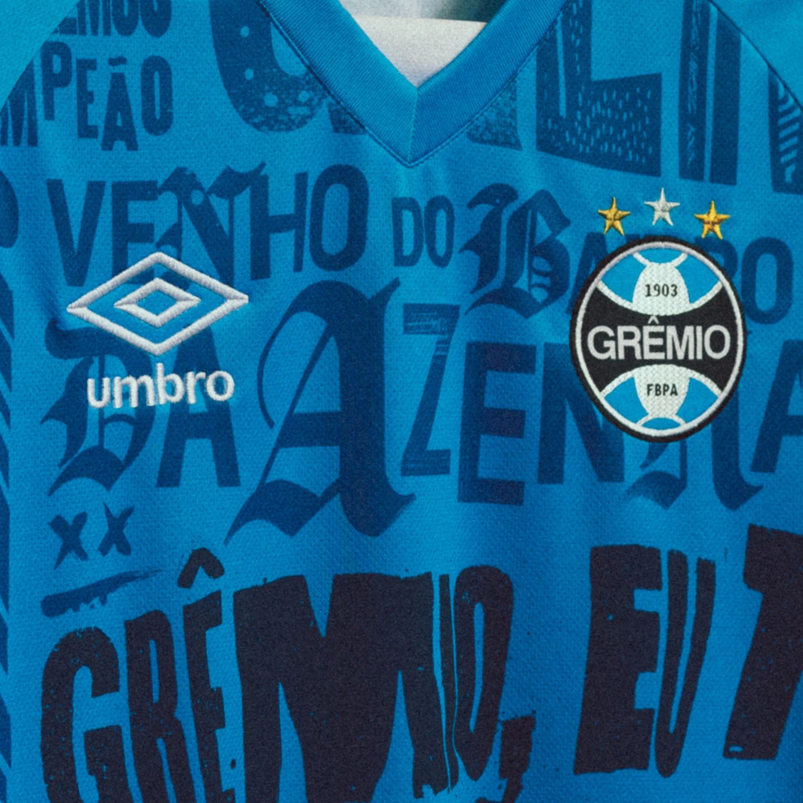 Featuring all three of “Imortal Tricolor”’s famous trio of colours - blue, black and white - the Killa Villa-designed 2023-24 release from the British brand’s latest campaign includes lyrics from Grêmio supporters’ 'Grêmio eu te don vida' anthem.