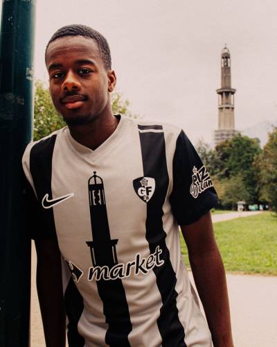 This jersey, in black and grey, pays tribute to the iconic Perret Tower, which will celebrate its 100th anniversary in 2025. The design prominently features a silhouette of the tower on the front, symbolising its deep cultural and historical significance to Grenoble while honouring the architectural legacy of its creator, Auguste Perret.