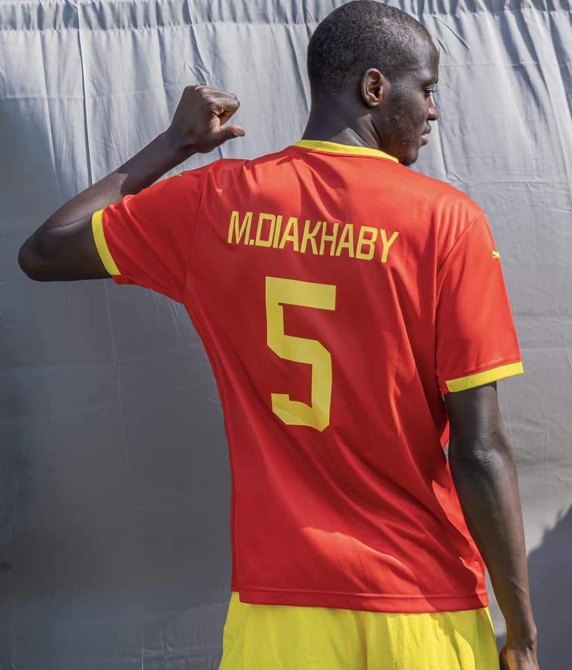 The cat logos of the African side’s German supplier are also in yellow, as is the player personalisation on the shirt, while the crest is in full colour and the shorts and socks that complete the kit are yellow and green respectively, so the outfit apes the look of the national tri-colour flag.