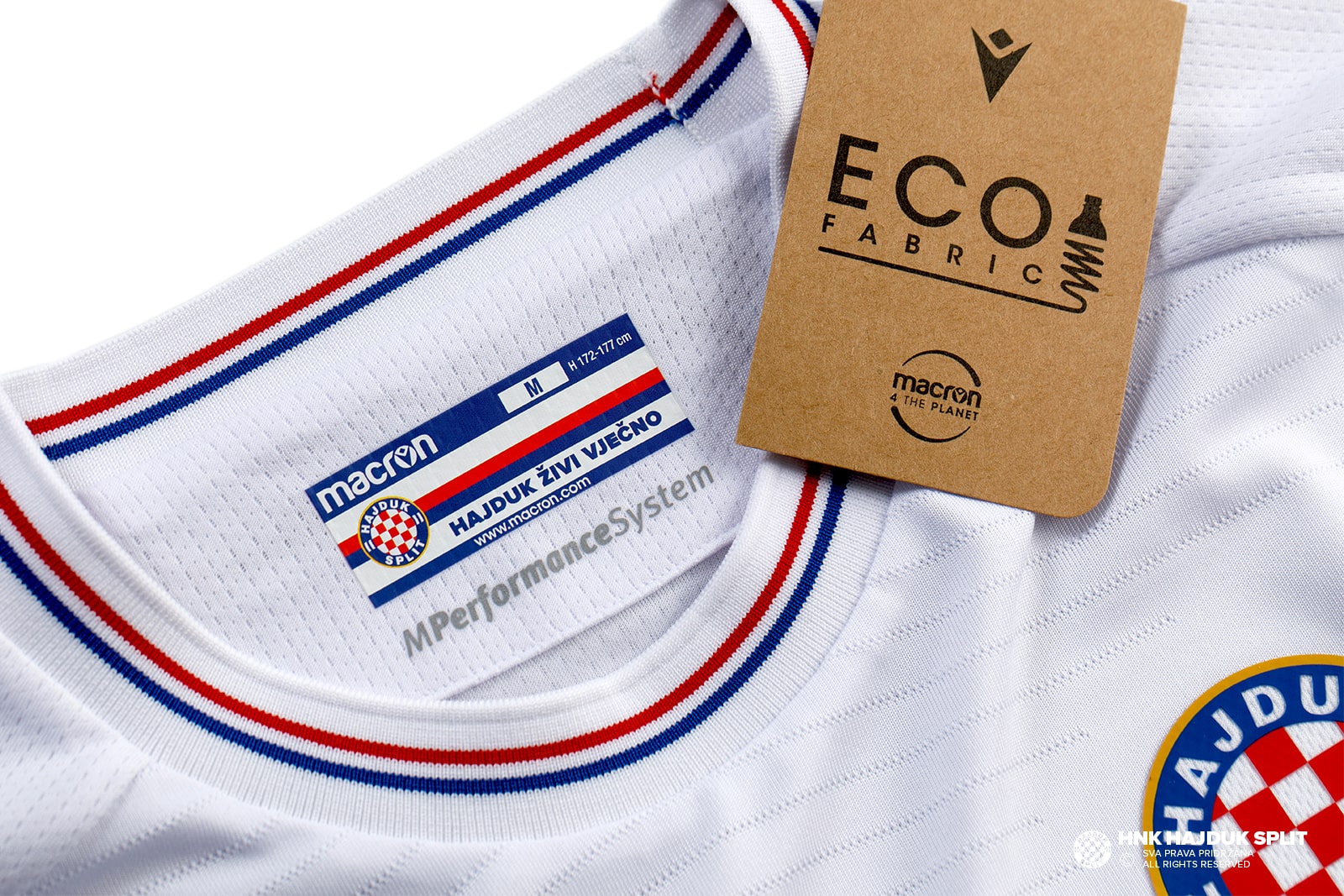 Made from recycled plastic, the shirt also boasts a full-colour crest with a golden border and ”Hajduk živi vječno” (“Hajduk lives forever”) embroidered on the upper back.