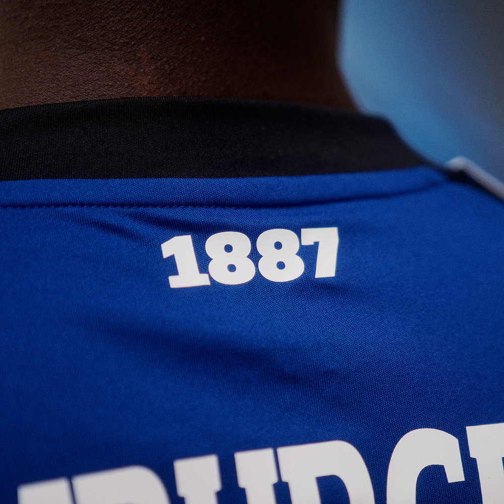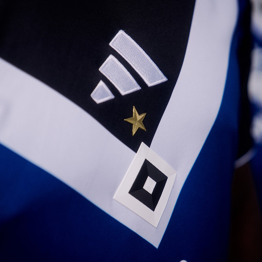 The design replicates the lower part of the HSV crest, completed by the standalone diamond in the centre of the chest. A white “1887” print features on the back of the neck, marking the club’s founding year.