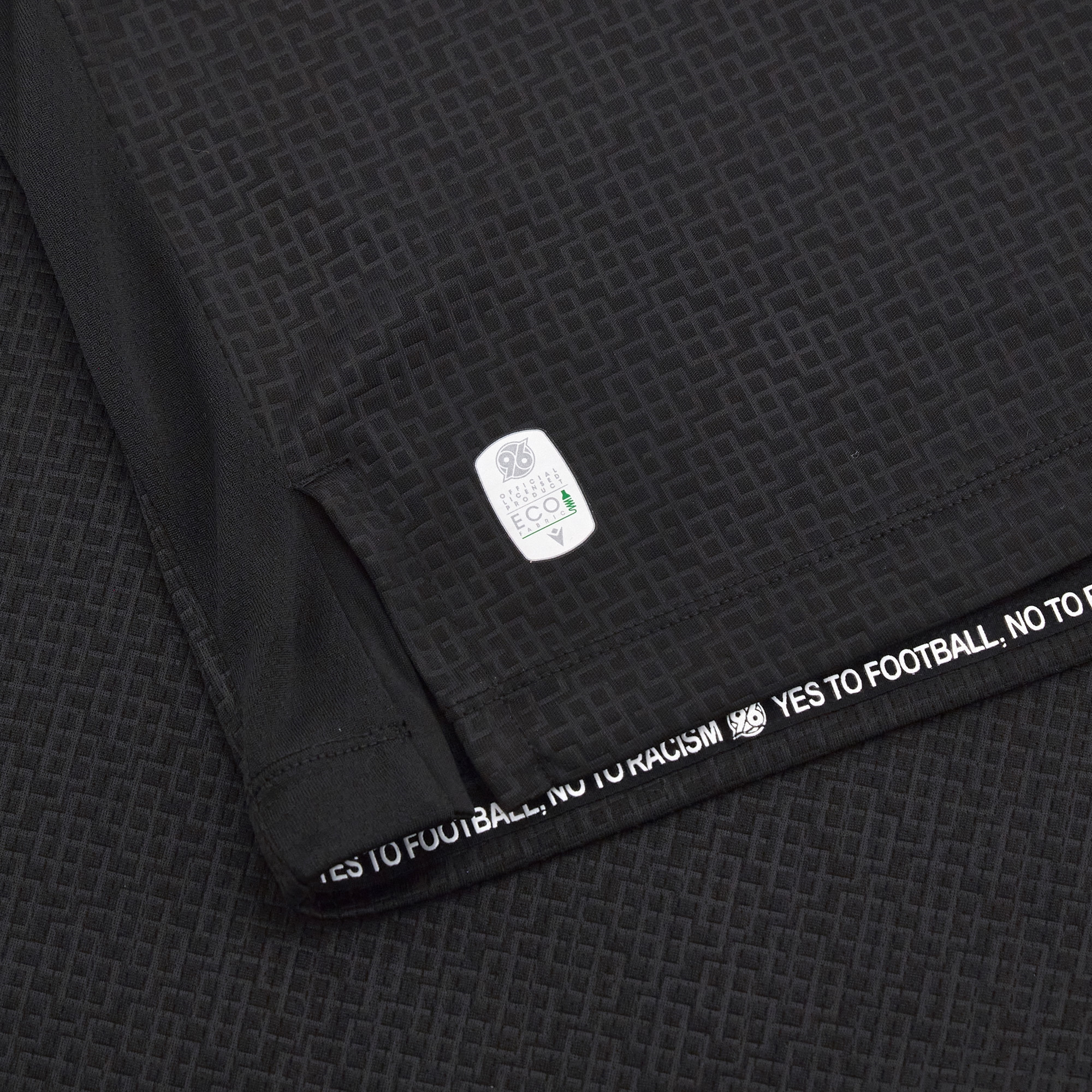 The texture chosen to embellish the front of the jersey is an embossed geometric pattern. The inside tape is fully customised with the motto: YES TO FOOTBALL, NO TO RACISM.